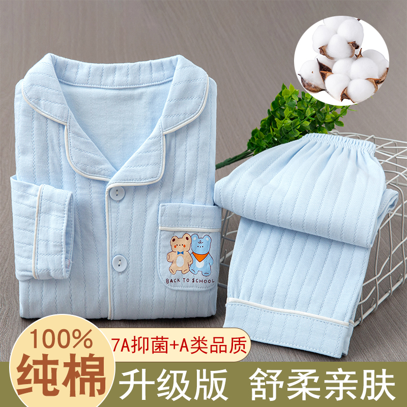 纯棉儿童家居服加厚男童女童全棉睡衣外出2024秋冬中大童开衫日系