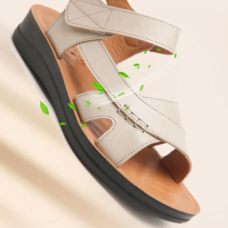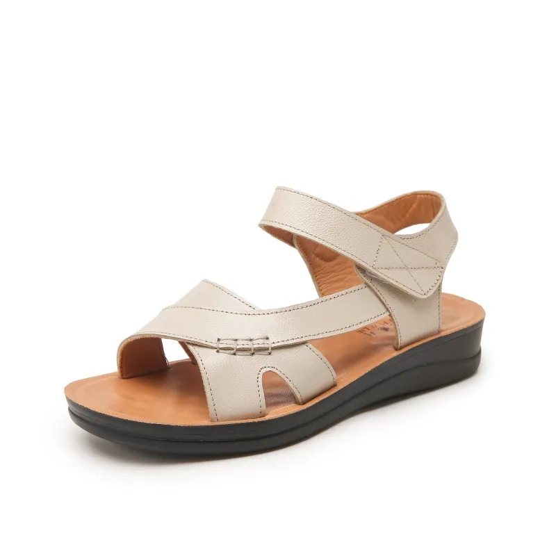 头层牛皮妈妈凉鞋软底真皮拖鞋平底中老年女鞋大码中年舒适老人鞋