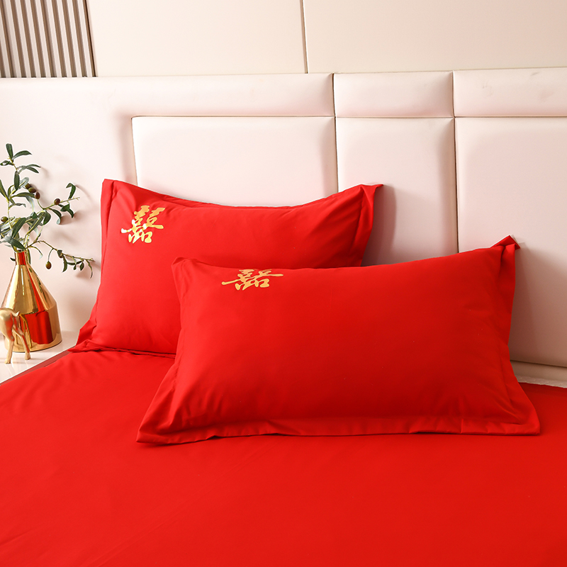 红色枕套一对装纯色喜字枕套婚庆单人枕头套大红喜庆结婚枕皮包邮
