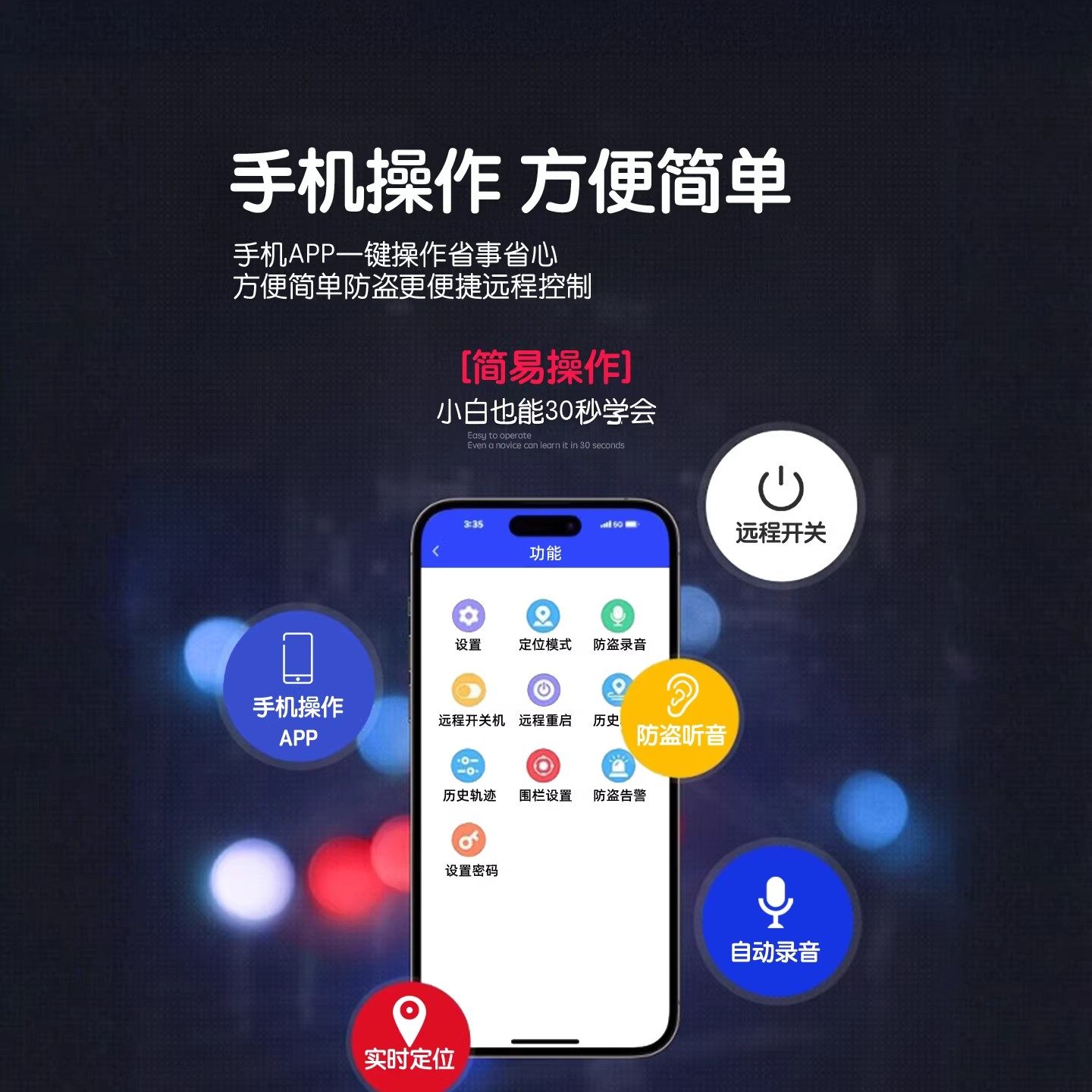gps定位器汽车订定位录音监控听器北斗车载跟踪追踪定位录音神器j