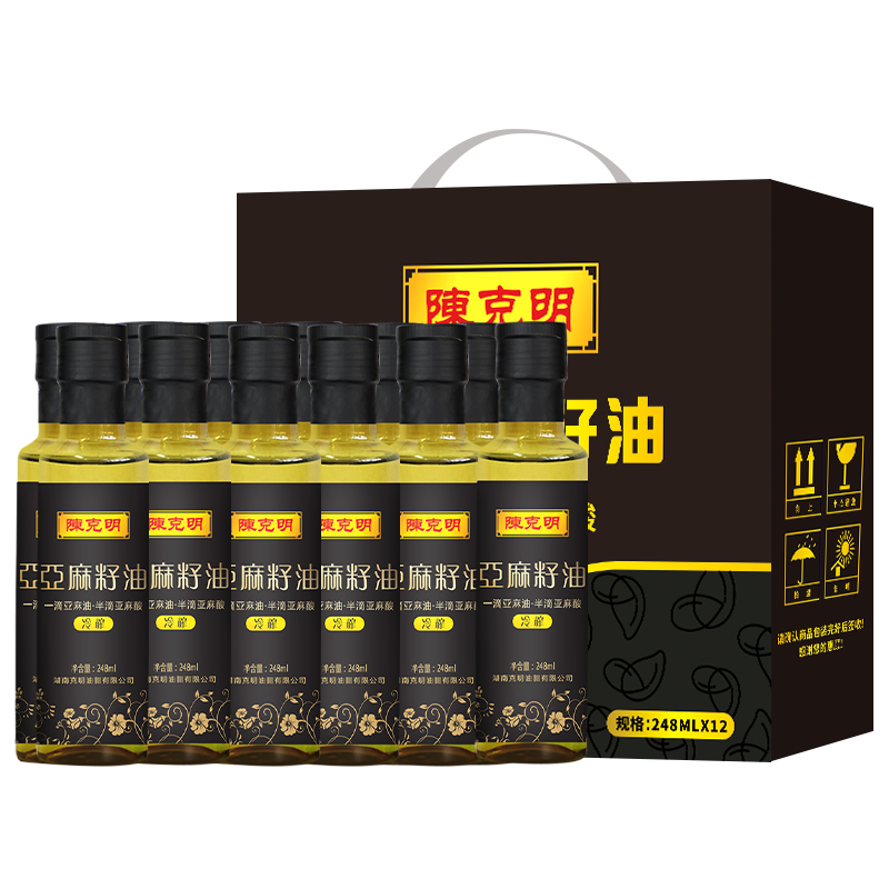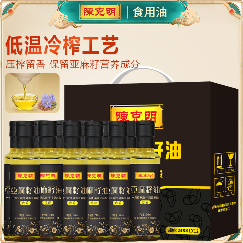 【整箱】陈克明248ml*12瓶亚麻籽油一级冷榨胡麻油食用健身礼盒装
