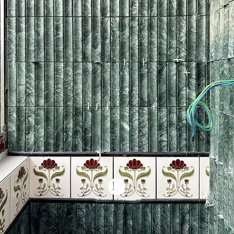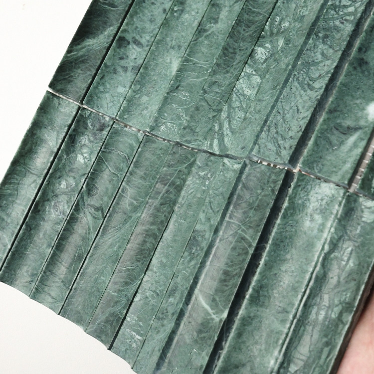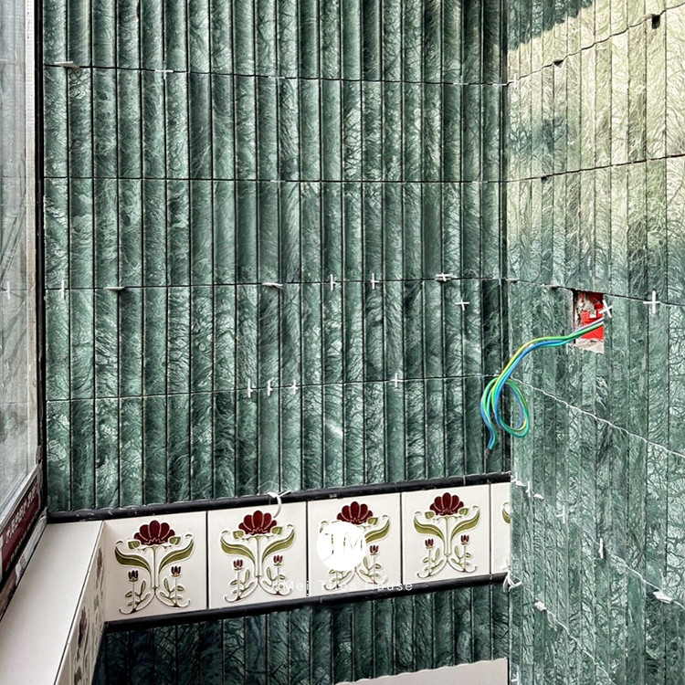 墨绿复古长条石材马赛克瓷砖卫生间厨房阳台工装吧台弧形背景墙砖