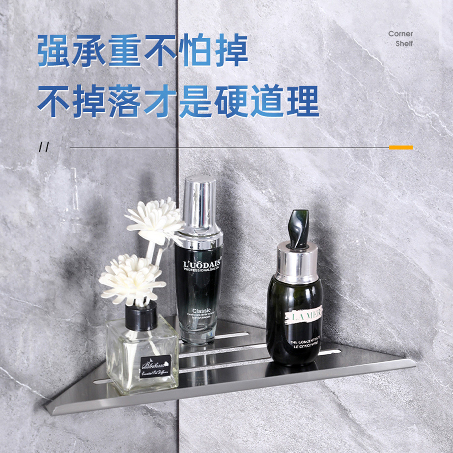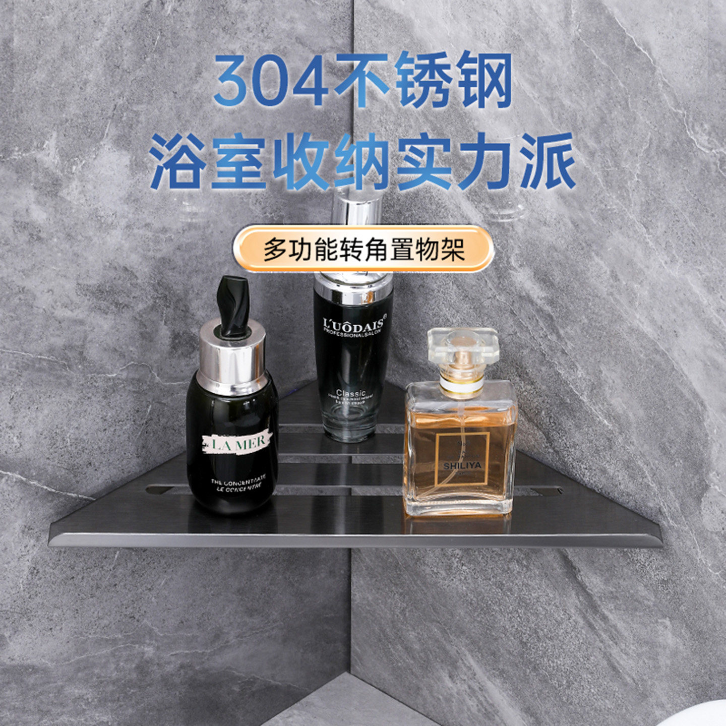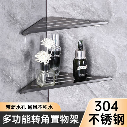 浴室三角置物架304不锈钢免打孔沐浴露架子卫生间三角架壁挂 墙上
