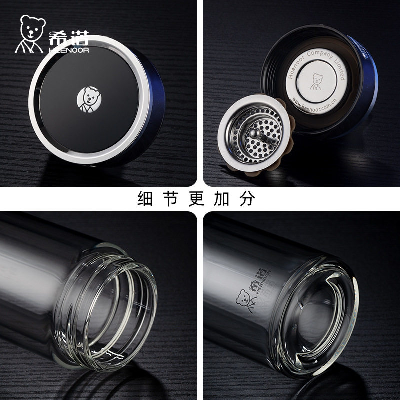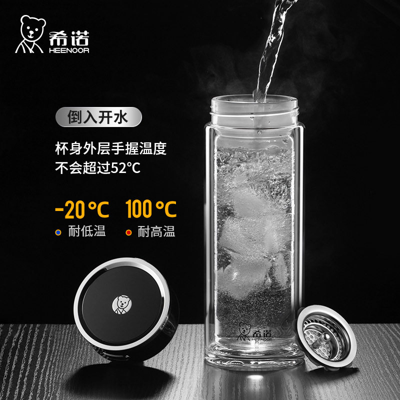 2026新款希诺高端双层玻璃杯男款商务泡茶杯办公室水杯高颜值杯子