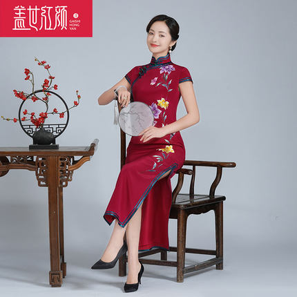 盖世红颜2023新款桑蚕丝刺绣旗袍裙婚宴喜宴婆婆妈妈礼服旧华如烟
