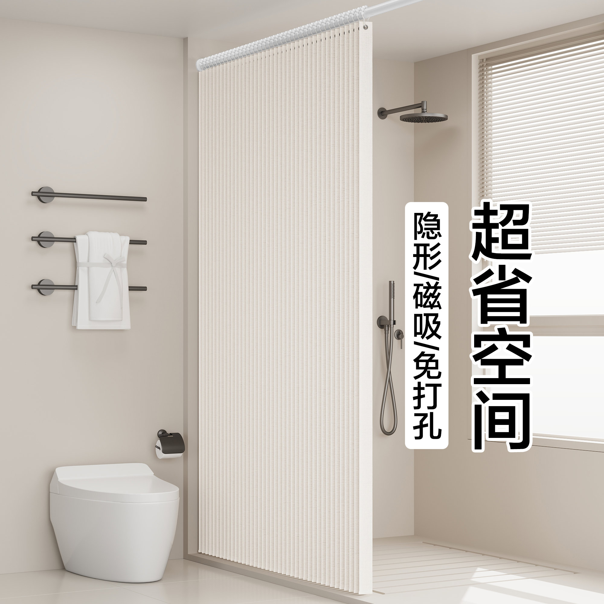 折叠隐形浴帘浴室隔断帘防水布套装免打孔磁吸卫生间淋浴干湿分离