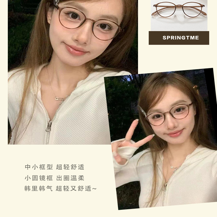 欧阳娜娜同款超轻小框眼镜框女茶色tr90小脸韩系椭圆可配近视镜片