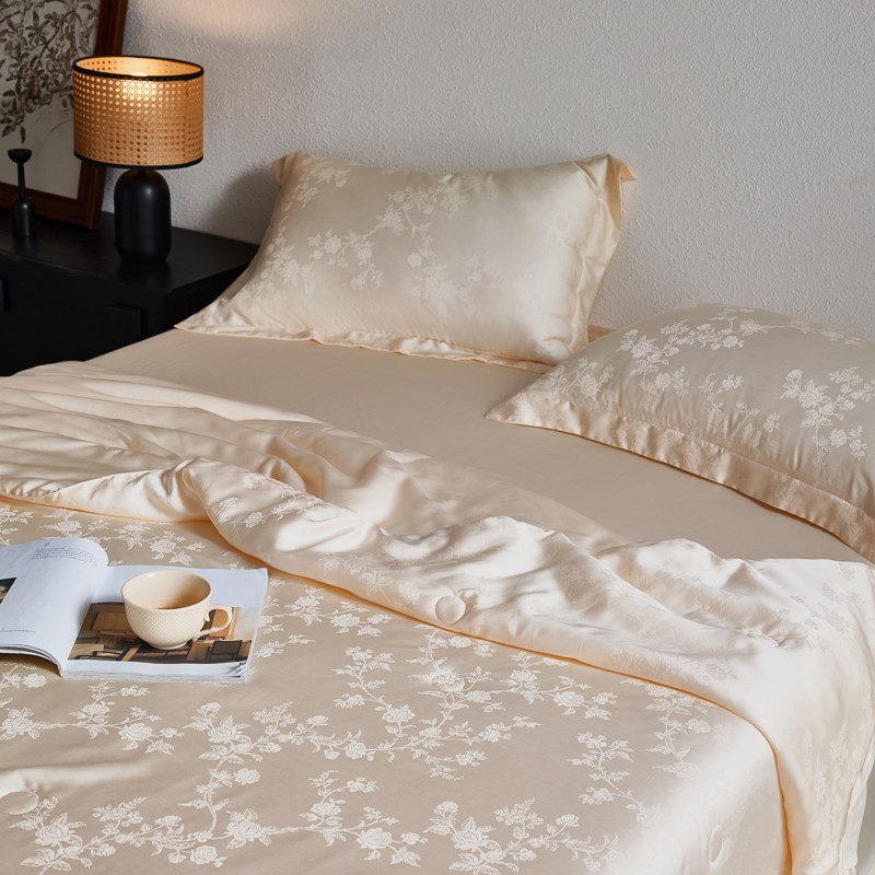 轻奢20%蚕丝凉感夏季80s天丝夏被四件套可机洗提花空调薄被子
