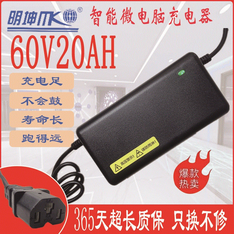 明坤电动车充电器48V12AH60V3A72V20AH铅酸蓄电池电车电瓶通用款