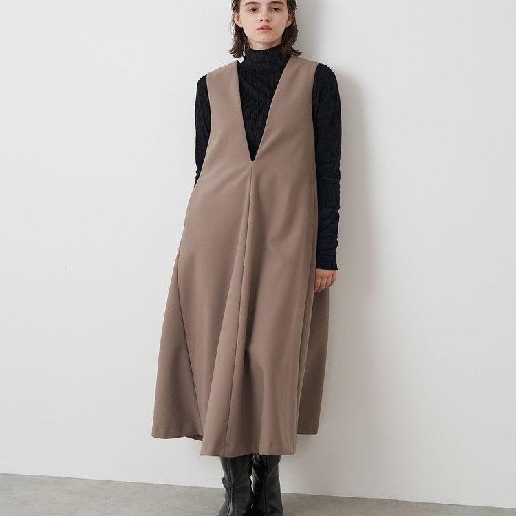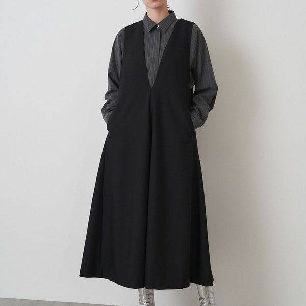 高级灰 纯元 EL** 深V 领背带 连衣裙