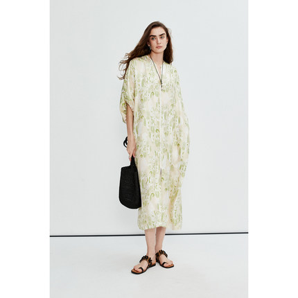 MRS Studios 原创度假印花“碧波幻漪”真丝斜纹绸宽松腰带连衣裙