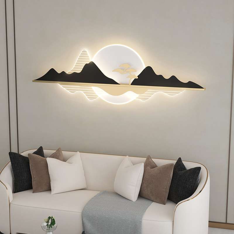 现代轻奢客厅装饰壁画led灯背有靠山水感沙发背景卧室墙挂画
