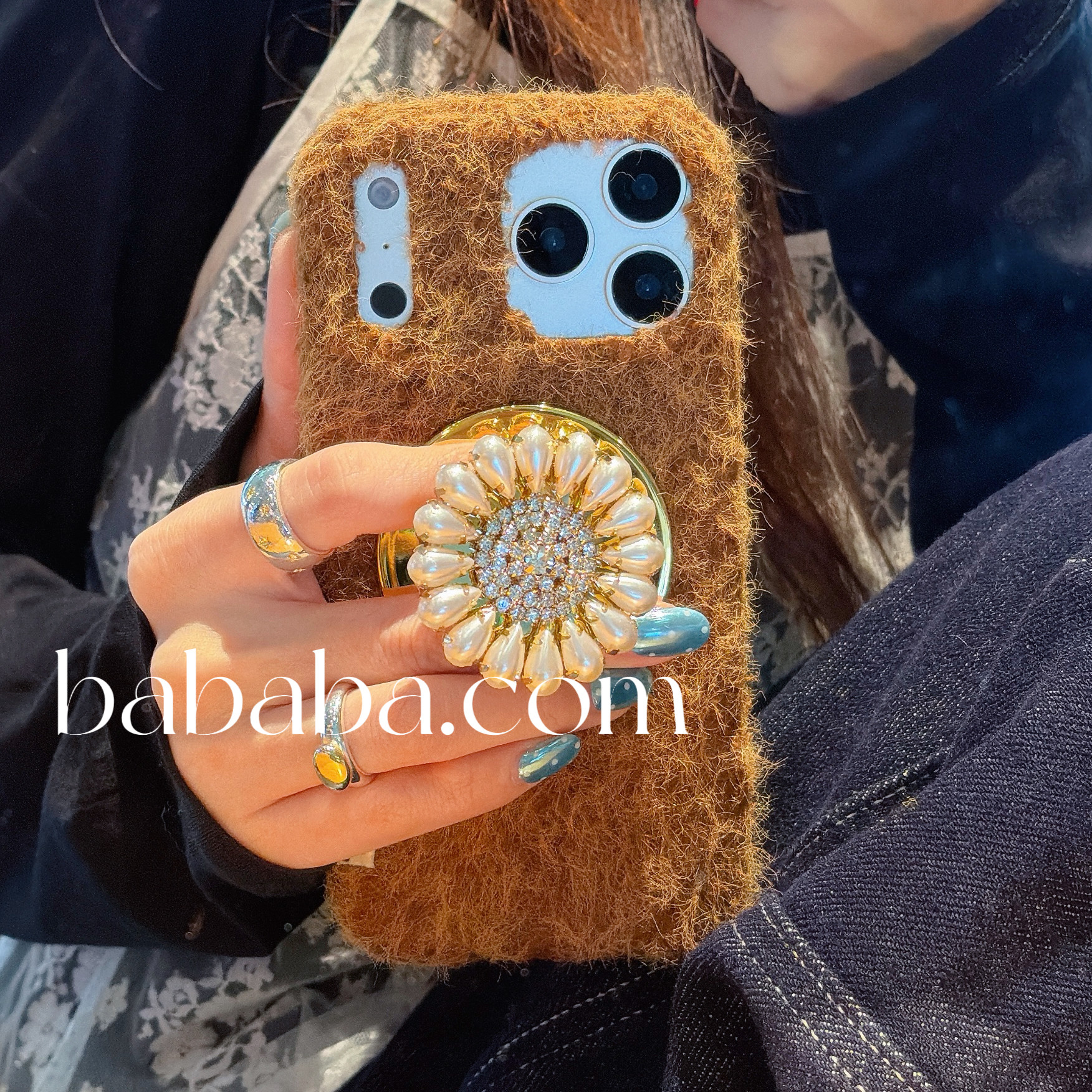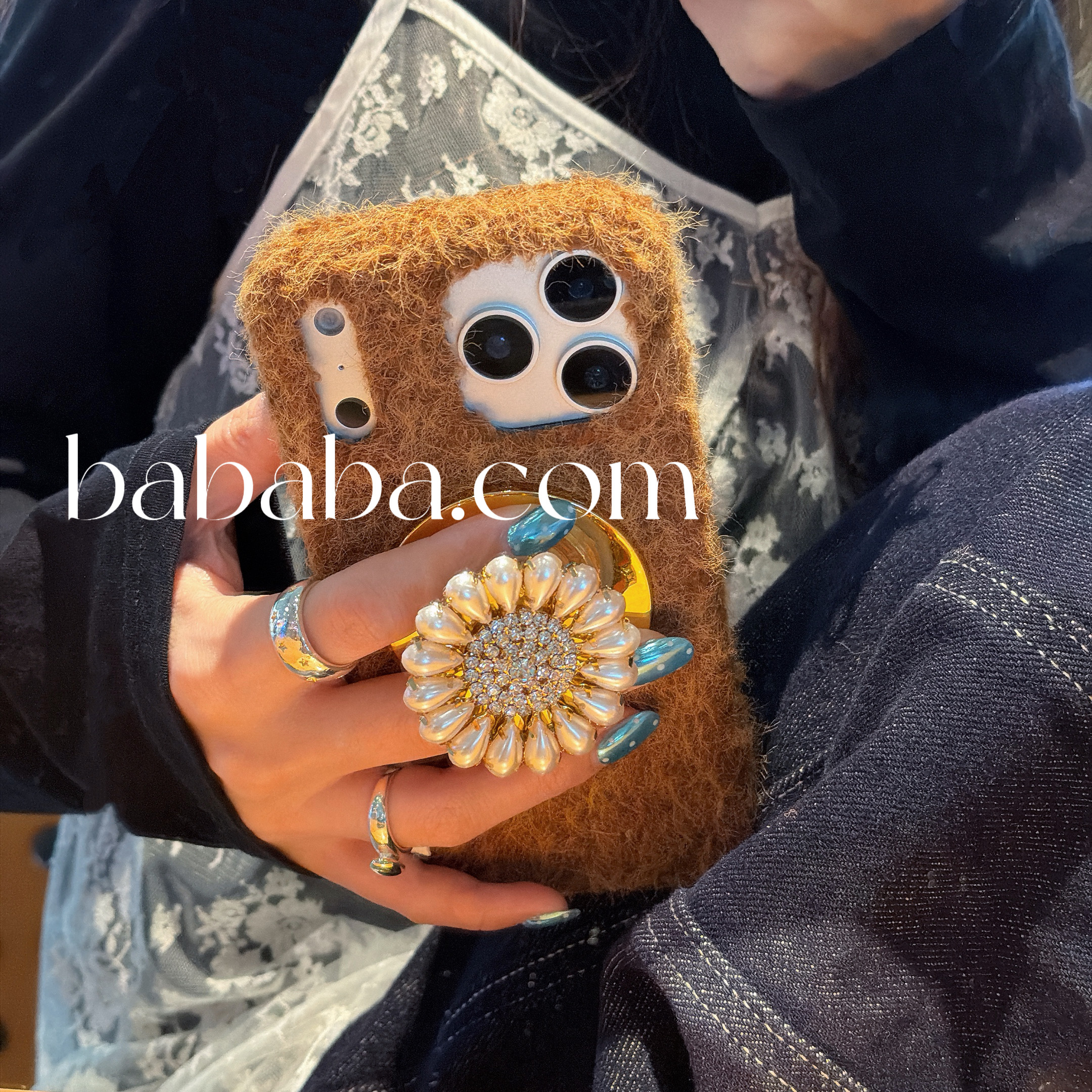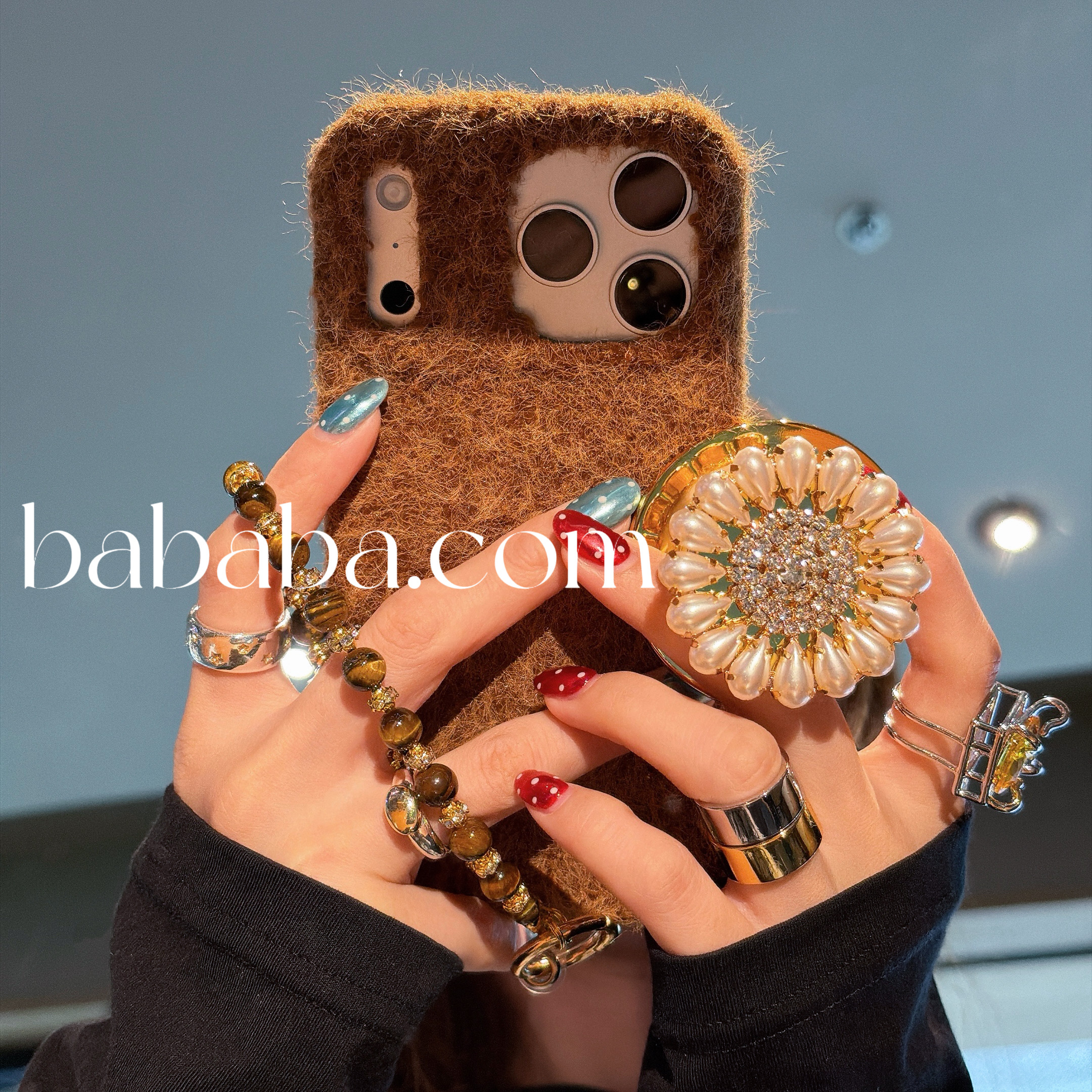 秋冬毛绒磁吸适用iPhone16promax苹果15pro手机壳太阳花支架16新款13/14高级感防摔15全包边个性创意潮流防摔