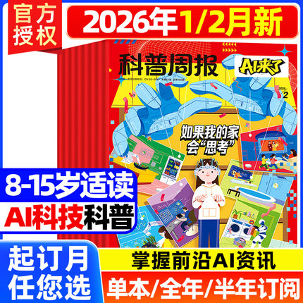 【全年/半年订阅】科普周报AI来了杂志2026年2月现货 8-15岁青少年中小学生AI学习探索科学科技百科万物好奇号思维逻辑非2025过刊