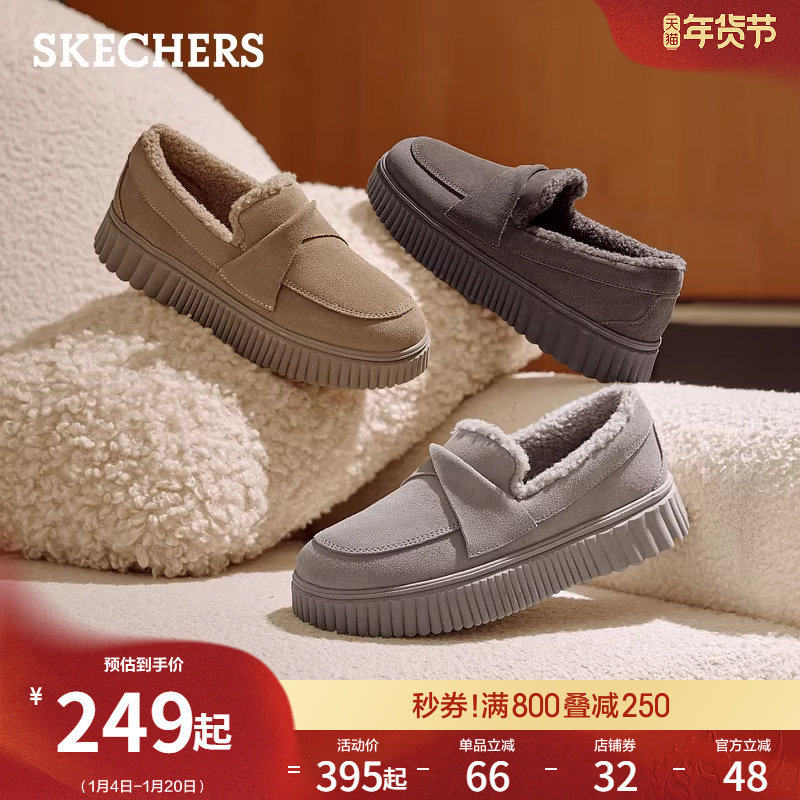 斯凯奇女款时尚加绒豆豆鞋乐福鞋