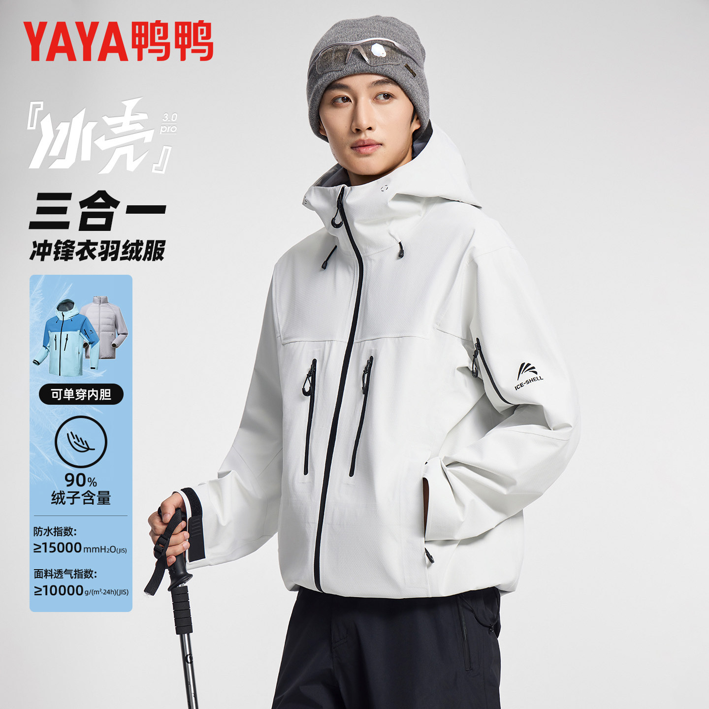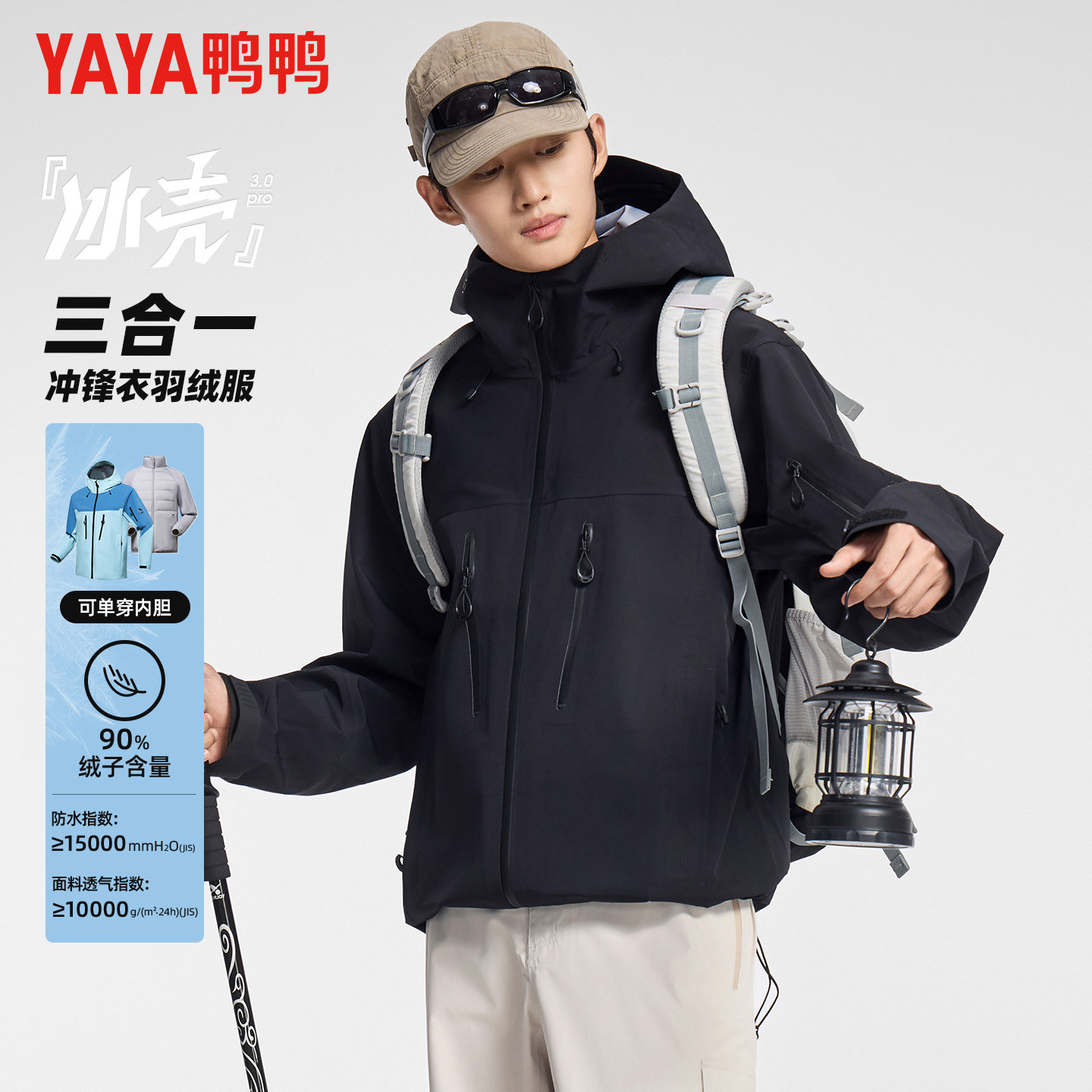 鸭鸭冬季羽绒服男款户外休闲可脱卸内胆冲锋衣男女同款保暖外套潮