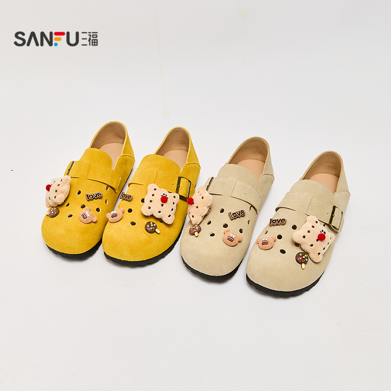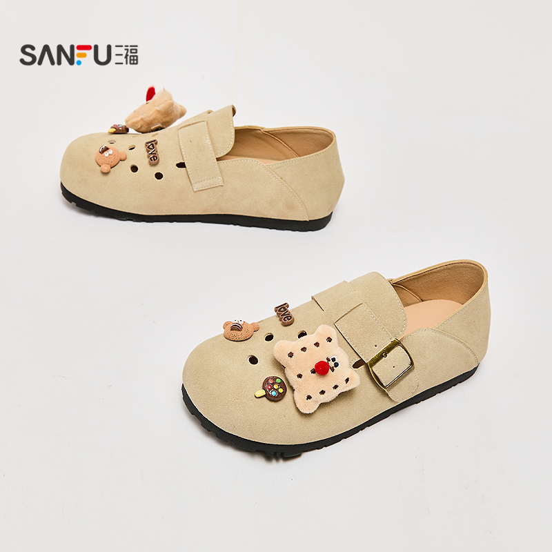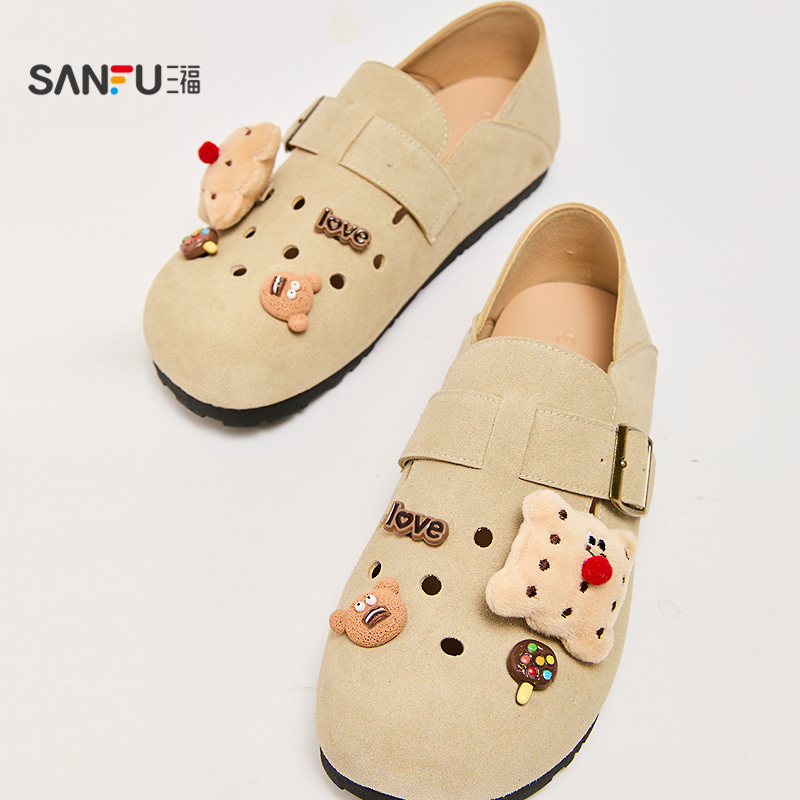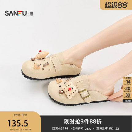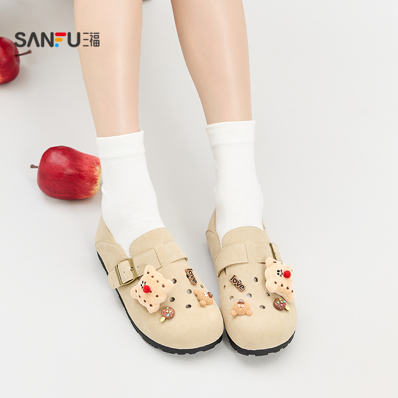 三福女乐福鞋秋季都市慵懒萌趣扣件套口洞洞勃肯鞋女鞋844661