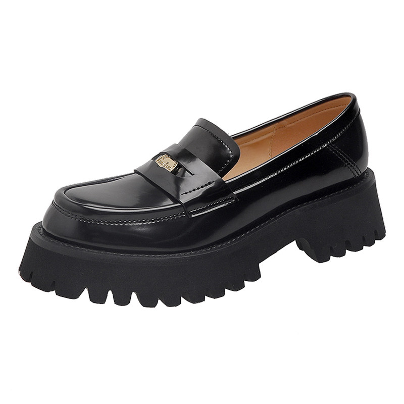 黑色复古英伦风一脚蹬圆头乐福鞋女2025春秋新款厚底法式小皮鞋女