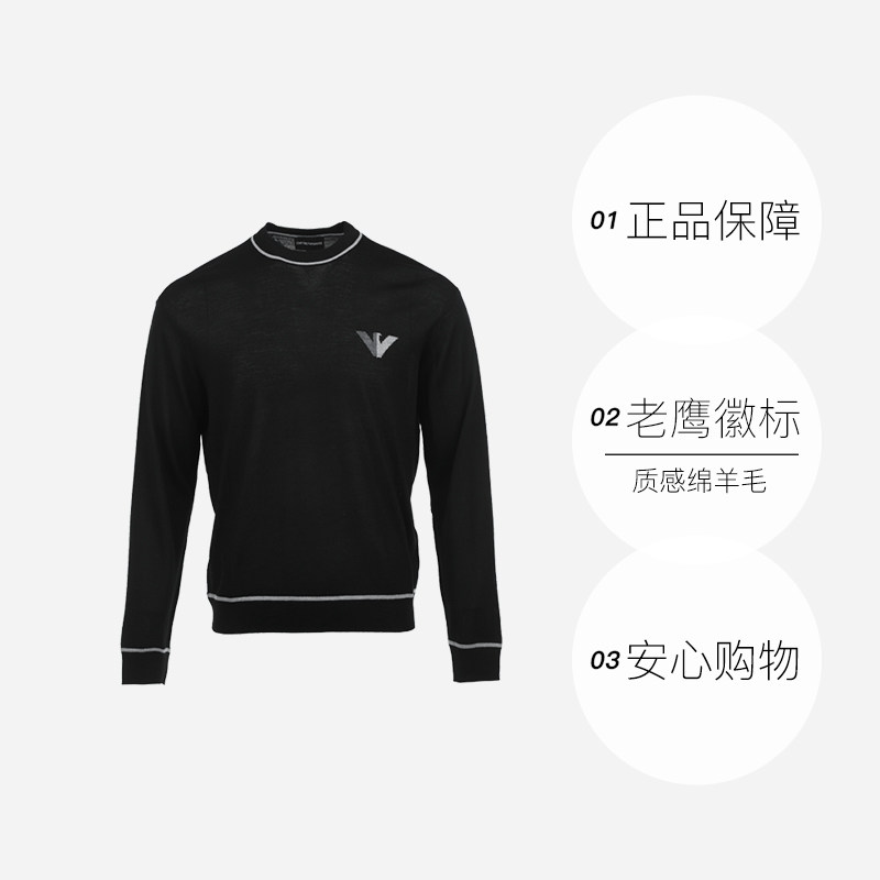 【自营】EMPORIO ARMANI/阿玛尼刺绣鹰标宽松羊毛男士套头针织衫