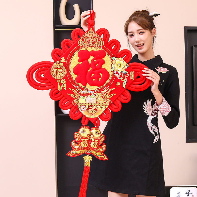 高档中国结挂件客厅大号福字电视沙发背景墙装饰布置新年春节挂饰