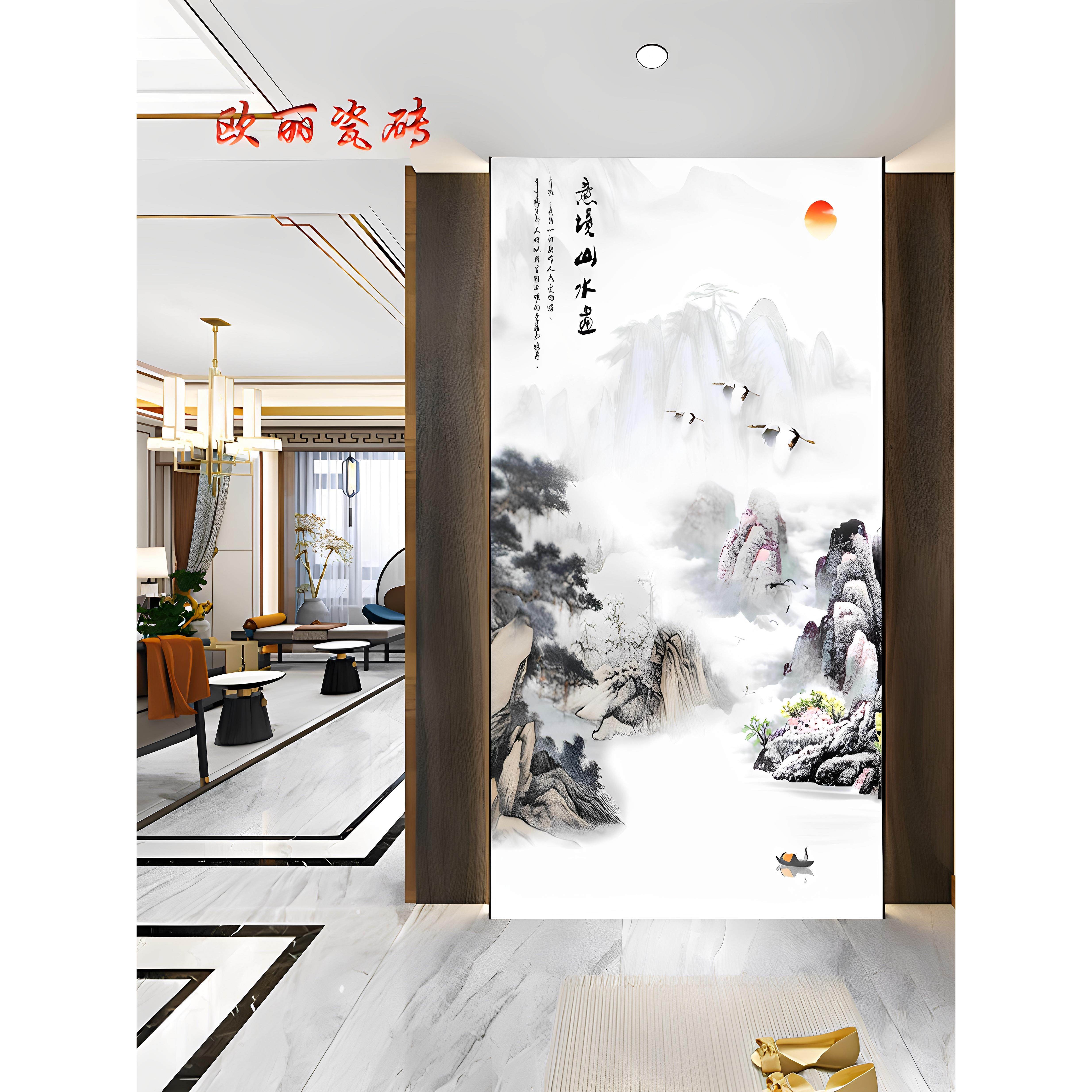 新款入户玄关壁画过道浴室客厅背景墙瓷砖岩板大理石微晶石山水画