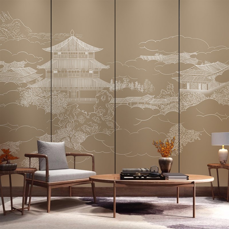 现代新中式电视背景墙纸客厅影视墙茶室茶楼书房壁纸定制壁画墙布