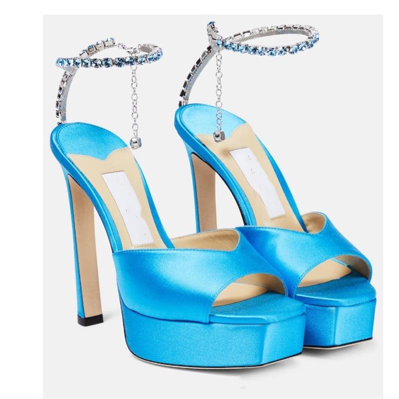 新款 2024外贸方头粗跟超高跟防水台中空后跟链条大码走秀凉鞋女