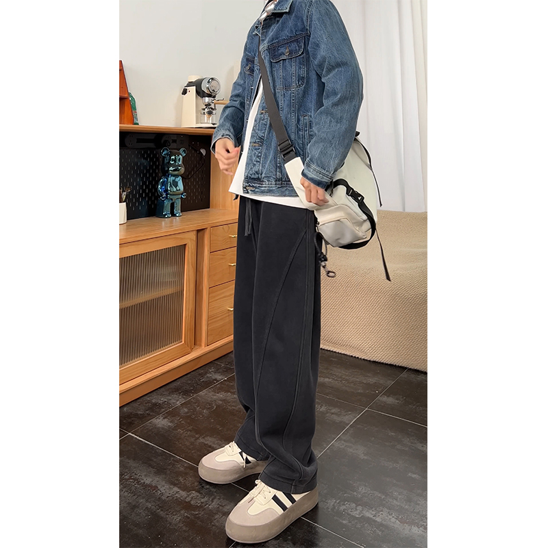 重磅立体剪裁弯刀卫裤男款秋冬加绒运动裤子宽松直筒阔腿休闲长裤