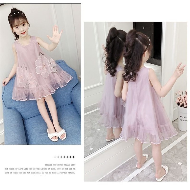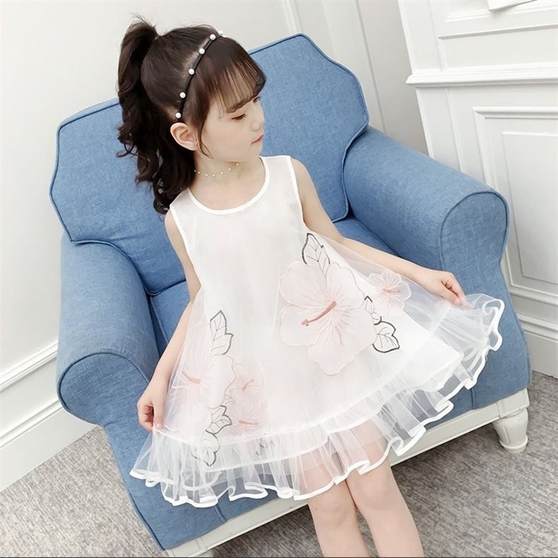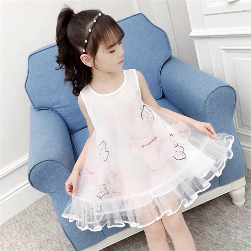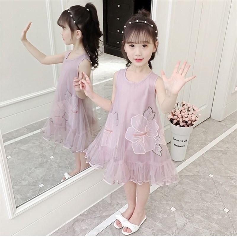女童连衣裙夏装2023新款超洋气无袖网纱儿N童吊带公主裙女孩裙子