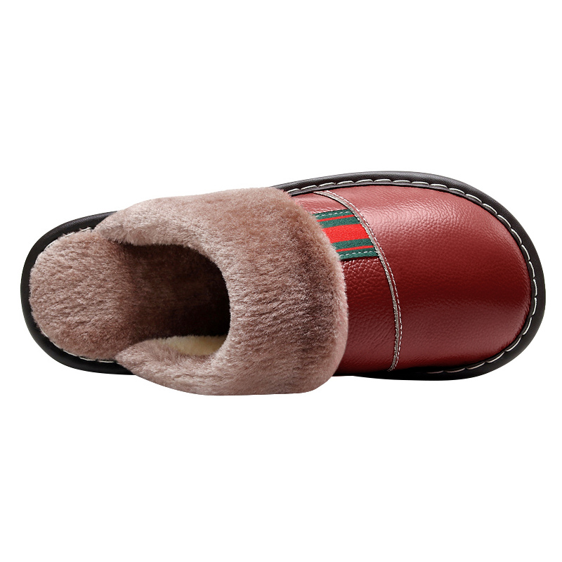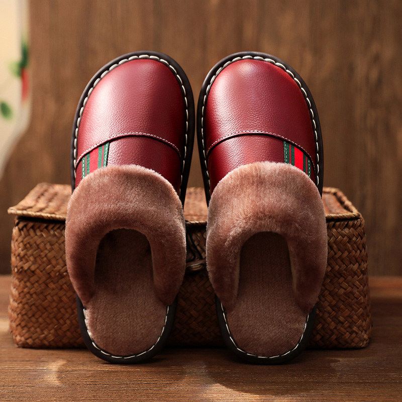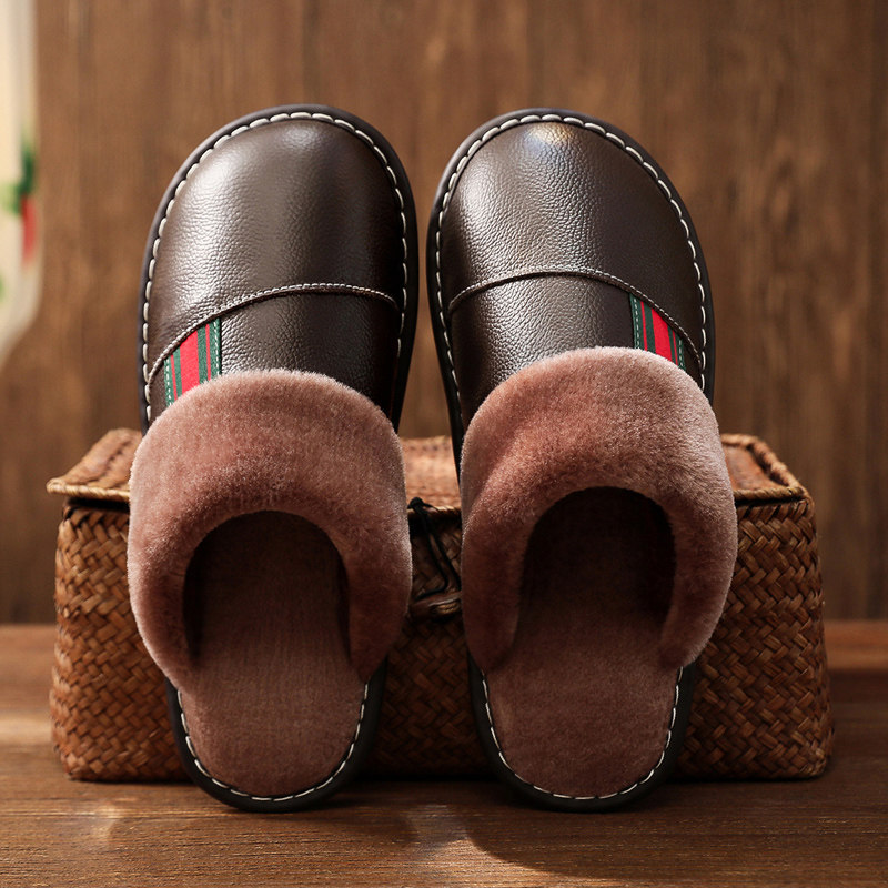 牛筋底棉拖鞋保暖皮拖鞋真皮冬季