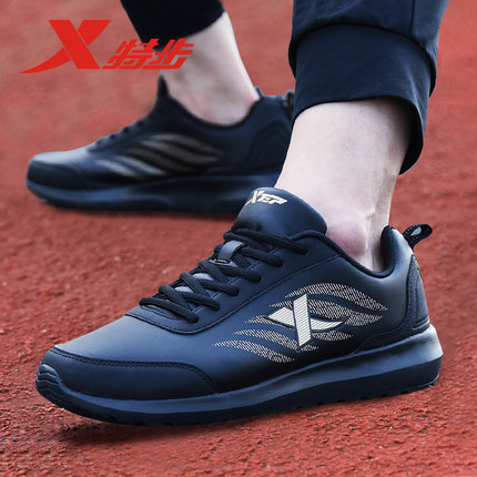 特步男鞋运动鞋男中年爸爸新款减震跑步鞋皮面防水休闲父亲鞋子男