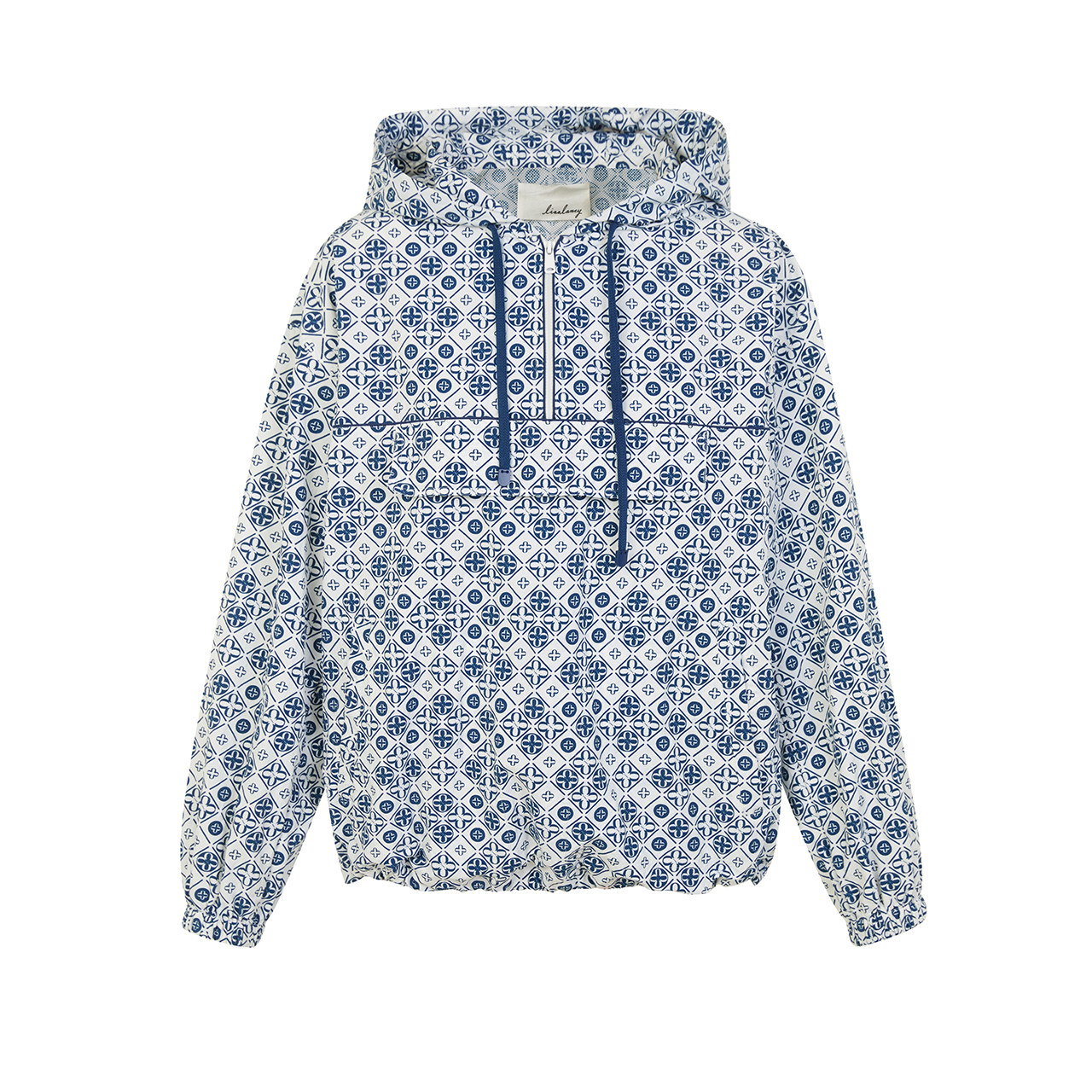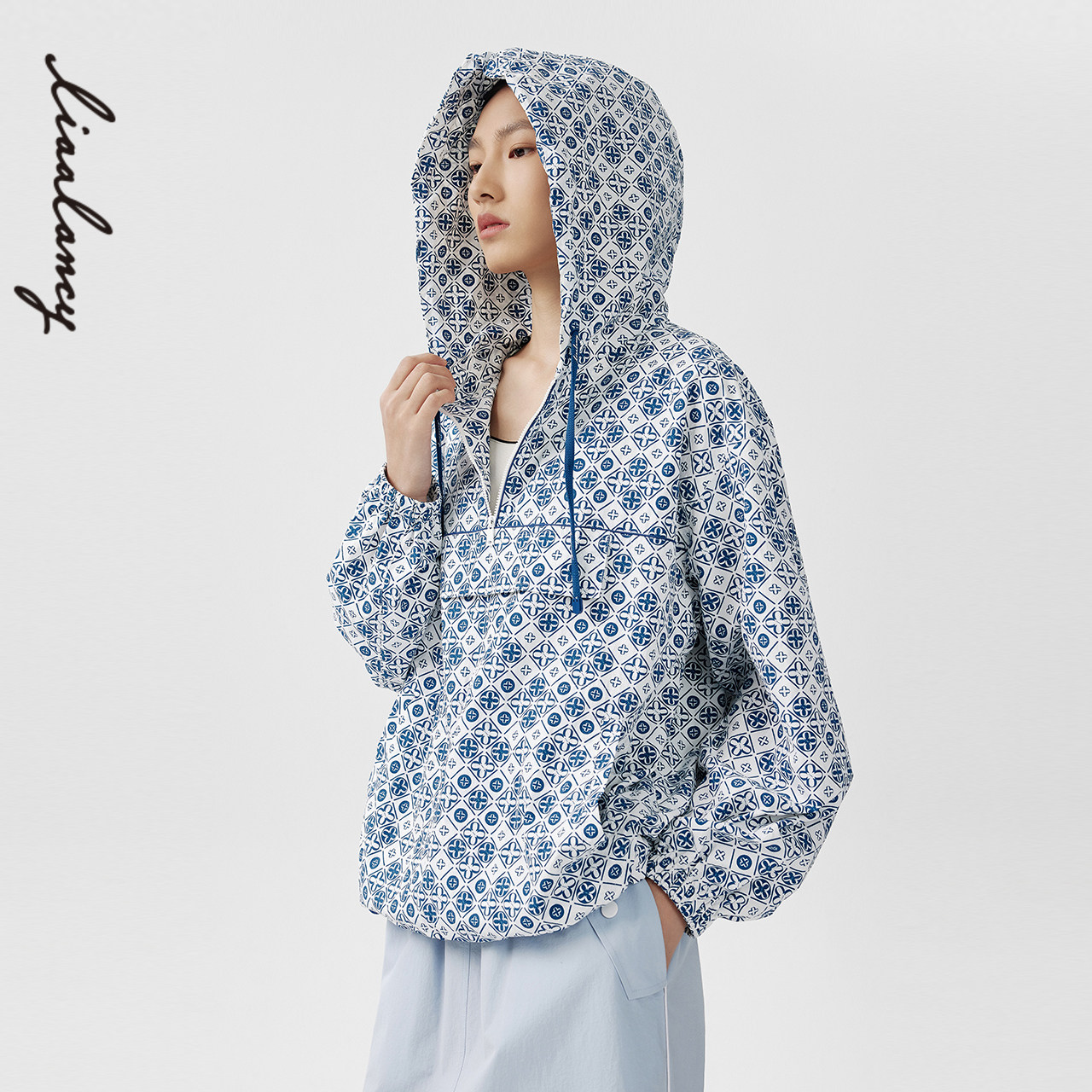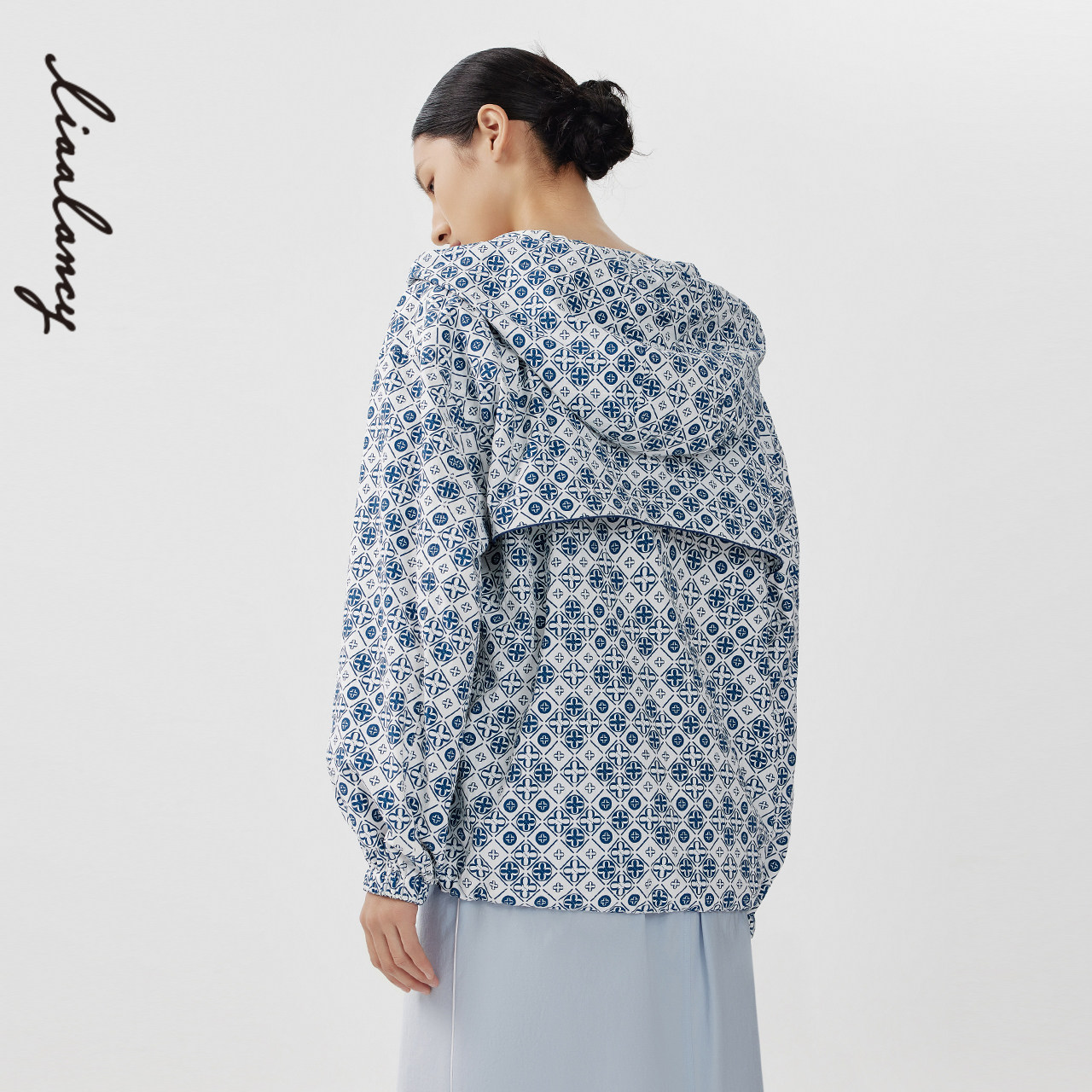 [朗姿奥莱]LANCY/朗姿春季新款宽松印花连帽夹克女士套头休闲半拉