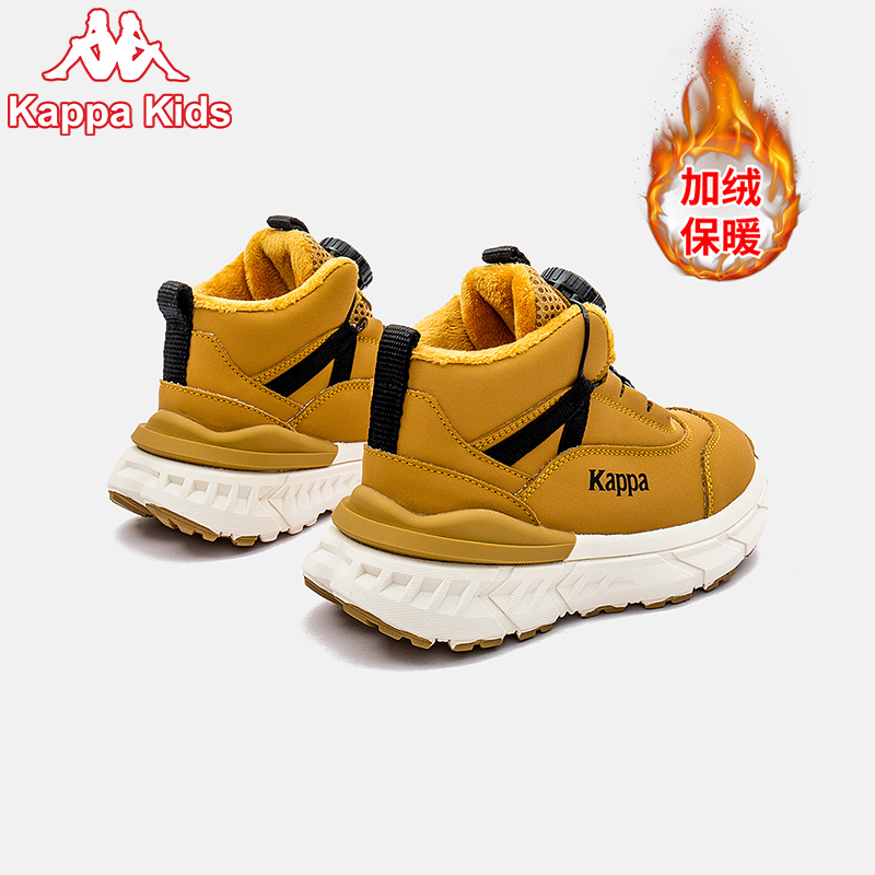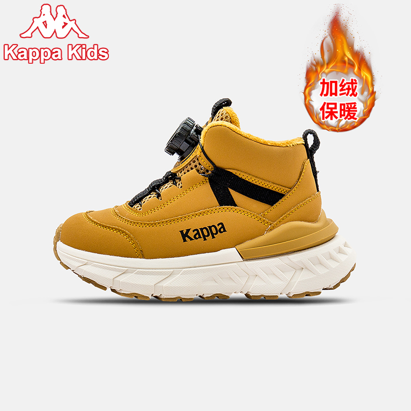 Kappa Kids卡帕加绒儿童中大童高帮保暖棉鞋舒适男女童运动鞋