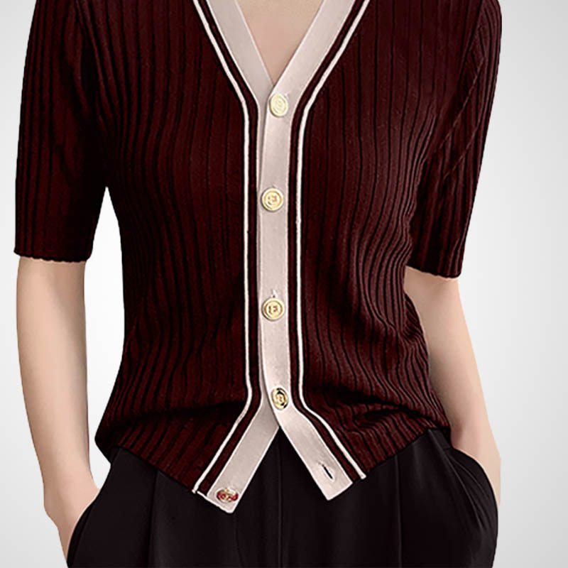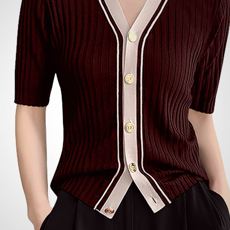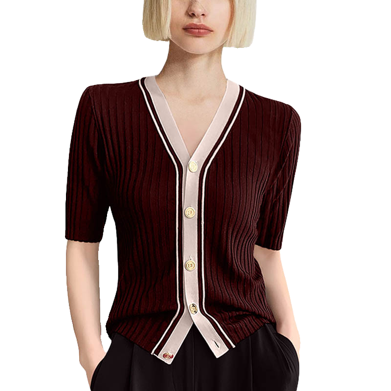 秋装简约修身冰丝短袖针织衫女2025新款气质时尚独特别致T恤上衣