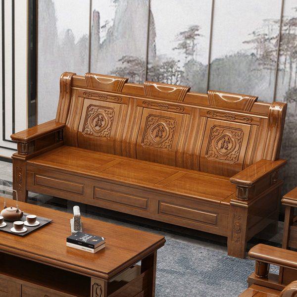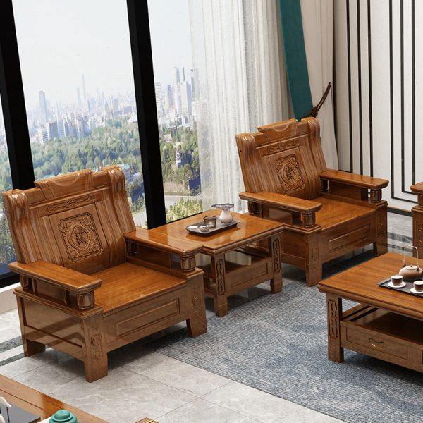 实木沙发坐椅单三人位两座客厅办公组合凉长椅子茶几冬夏两用木质