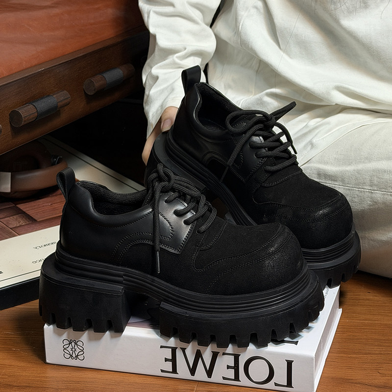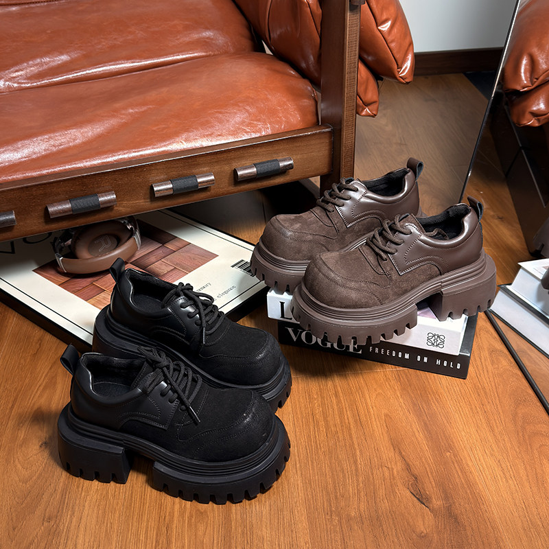 复古真皮松糕厚底小皮鞋女英伦风圆头德比鞋小个子增高乐福鞋单鞋