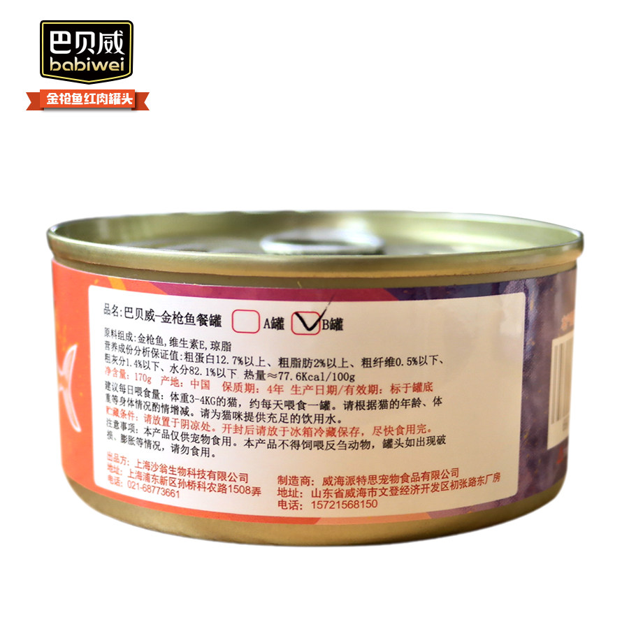 海鸥狒狒主自品牌 巴贝威天然金枪鱼红肉猫罐170克*48罐汤罐胨罐