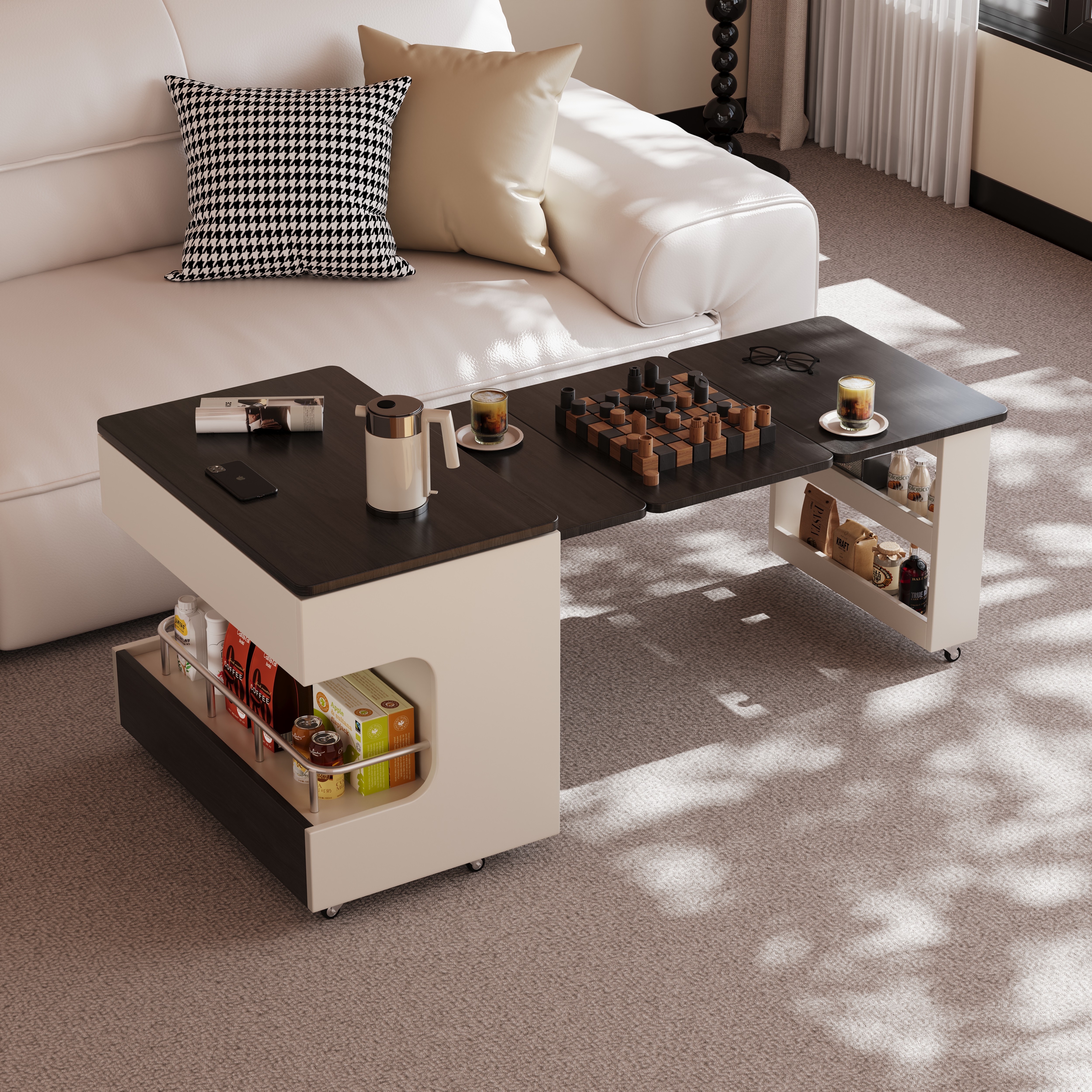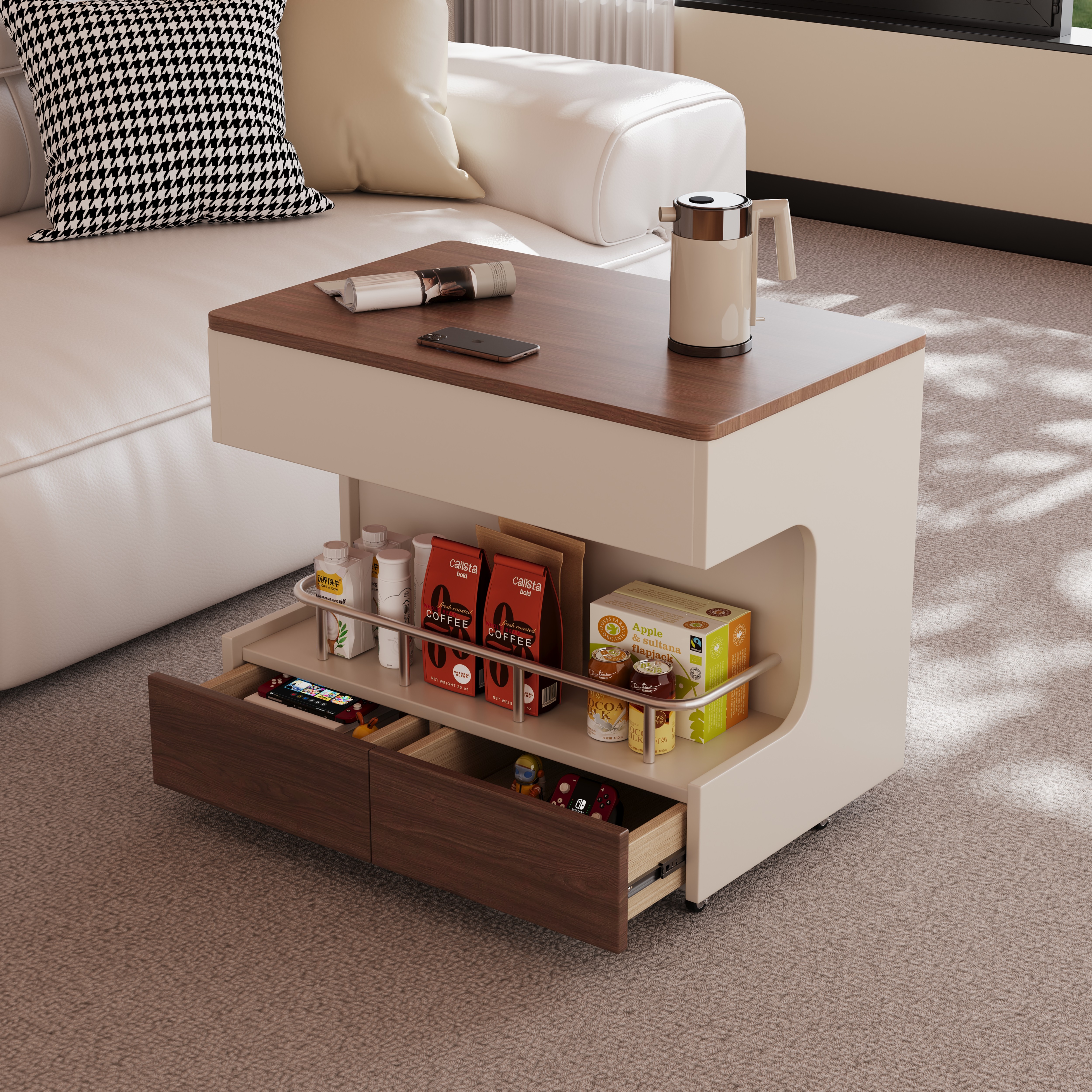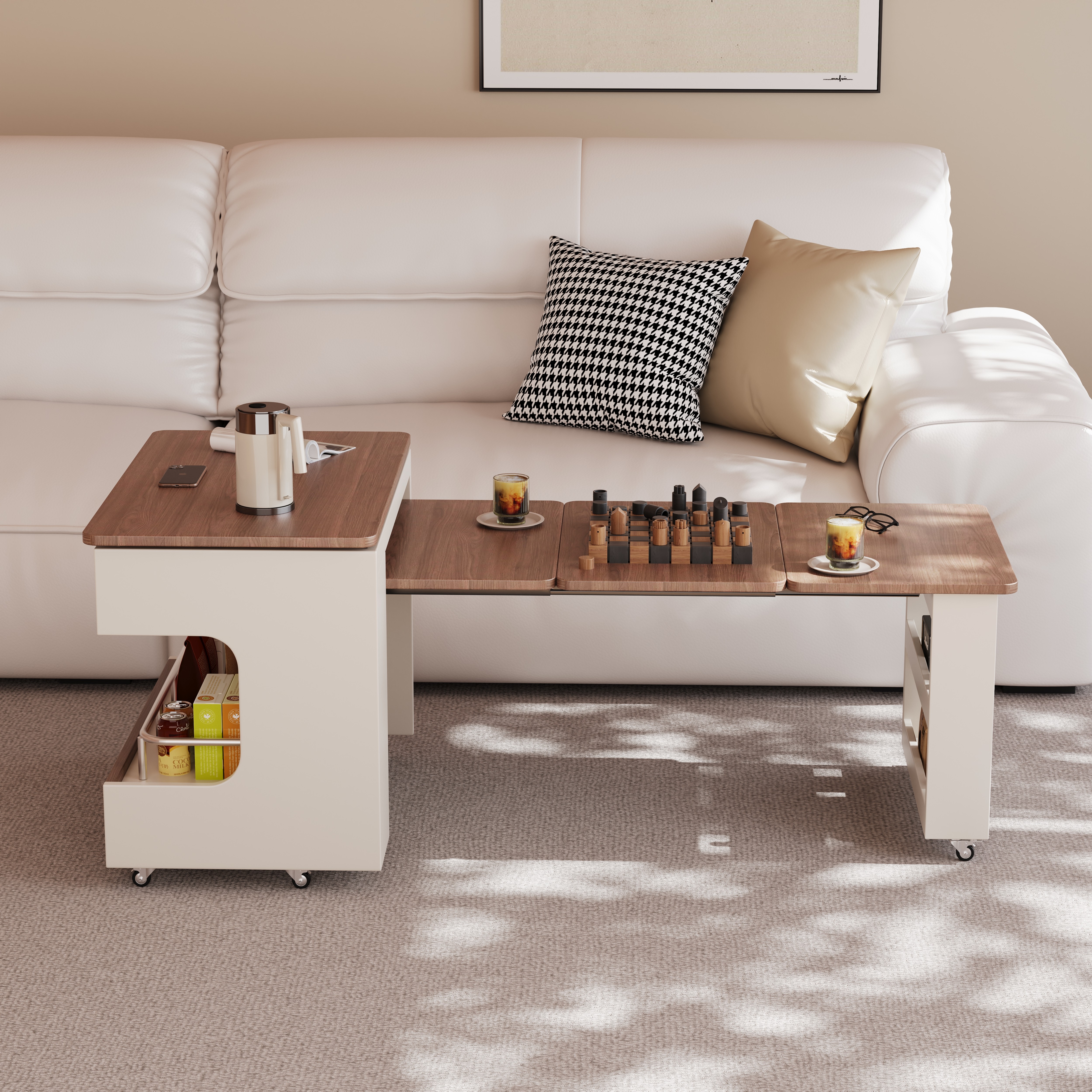 奶油风实木可升降伸缩折叠边几