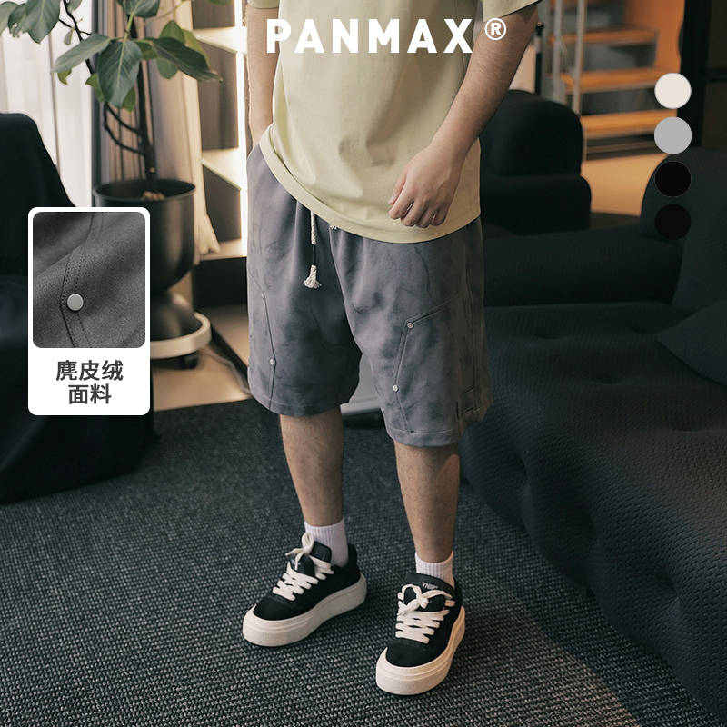 PANMAX潮牌大码男装夏款麂皮绒垂感短裤复古风松紧腰五分休闲裤