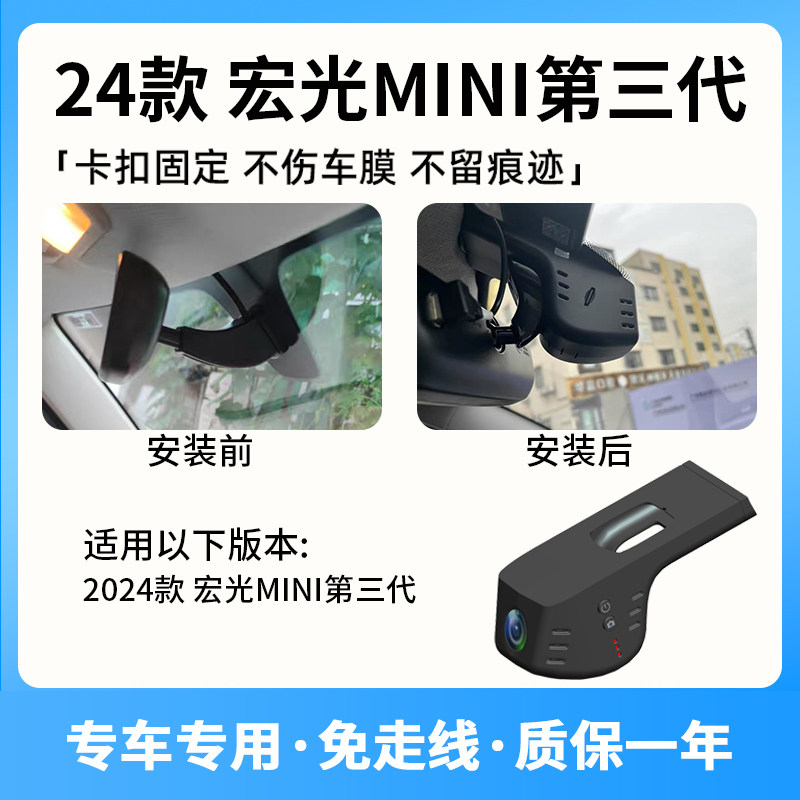 五菱宏光MINIEV四门版行车记录仪第三代专用马卡龙USB新款免走线