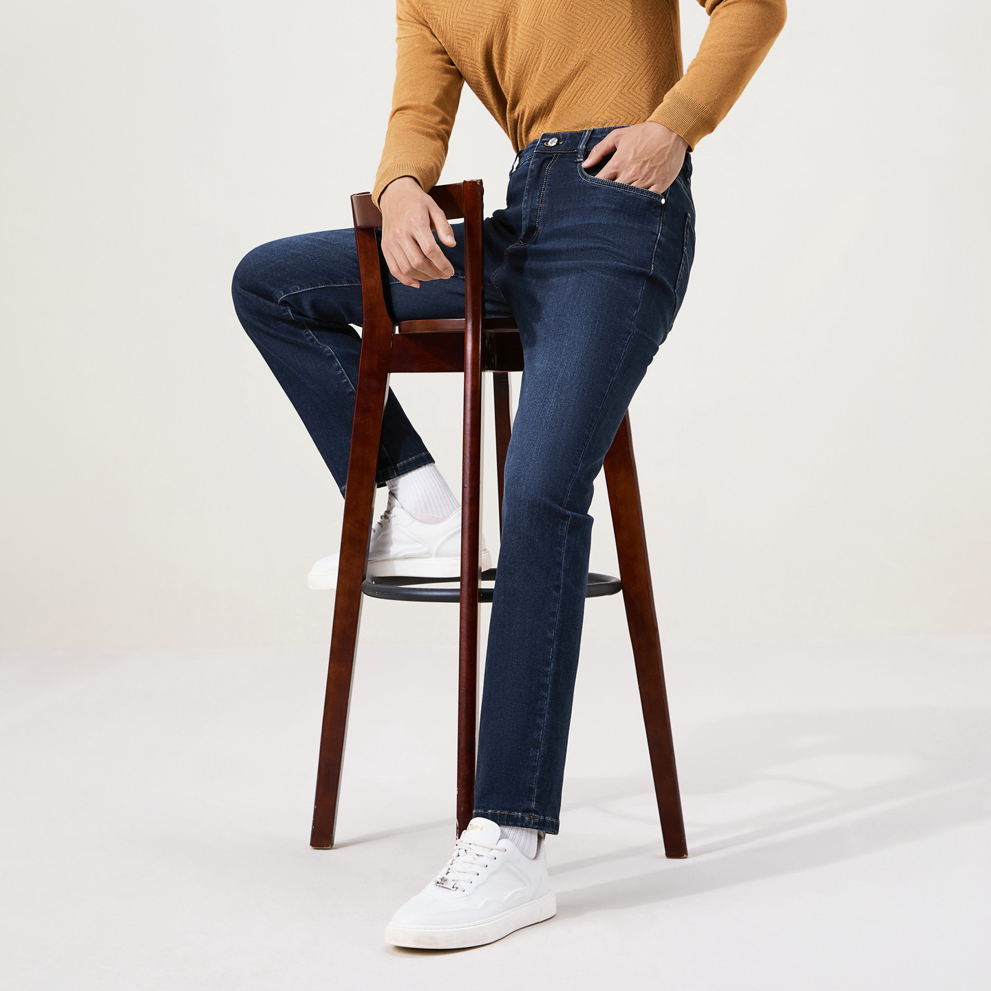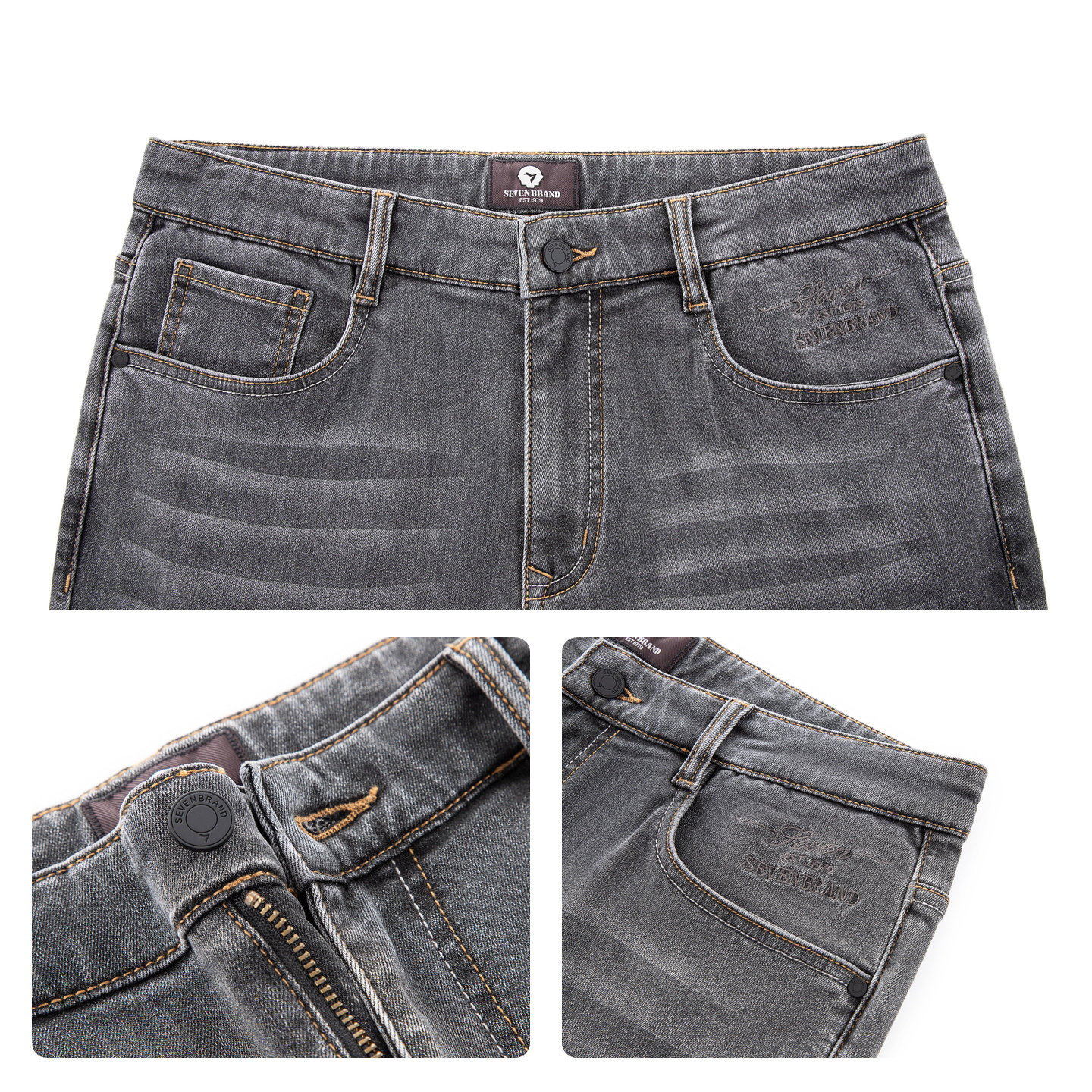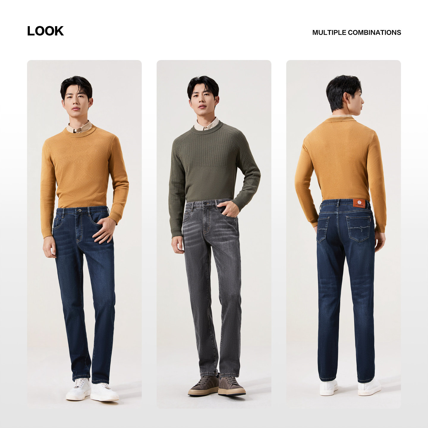【火山岩】柒牌牛仔长裤秋冬保暖男士弹力中腰直筒裤子休闲男装