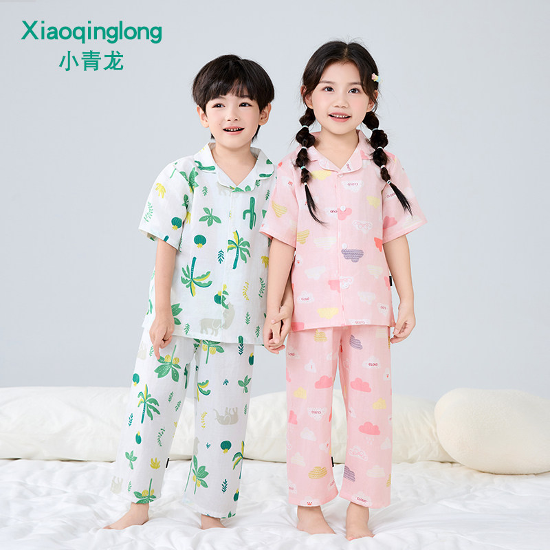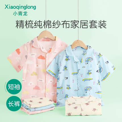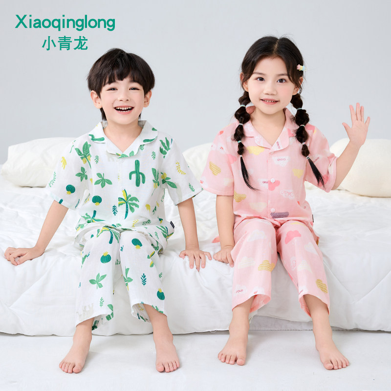 小青龙儿童春夏季纯棉纱布短袖套装男童女童中大童休闲家居睡衣秋