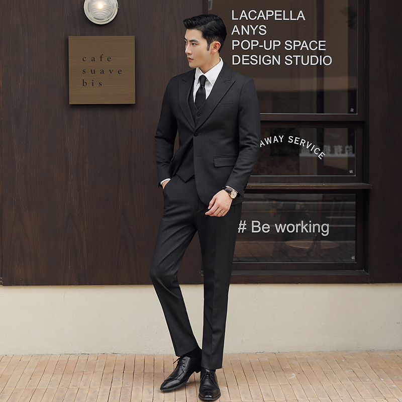 皮尔卡丹羊毛西服套装男士结婚商务职业修身正装新郎西装英伦风帅