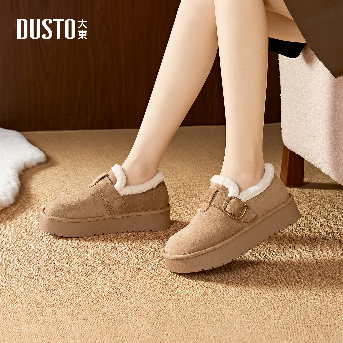 大东女鞋勃肯鞋2025冬季新款加绒保暖雪地靴时尚舒适厚底防滑棉鞋