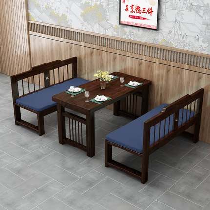 实木沙发简约现代小户型双三人卡座靠背餐桌椅组合新中式沙发长椅