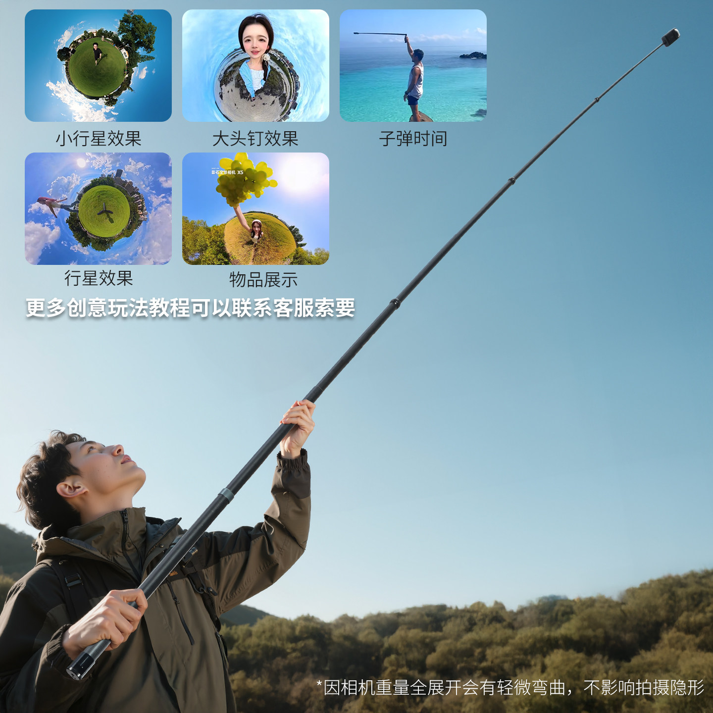 超长自拍杆碳纤维 运动相机ForGoPro360全景手机直播三脚架3米5米