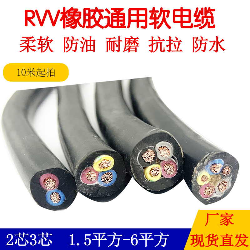 RVV橡胶电缆线2芯3芯4芯5芯1.5 2.5 4 6平方防冻耐油电源软电缆线