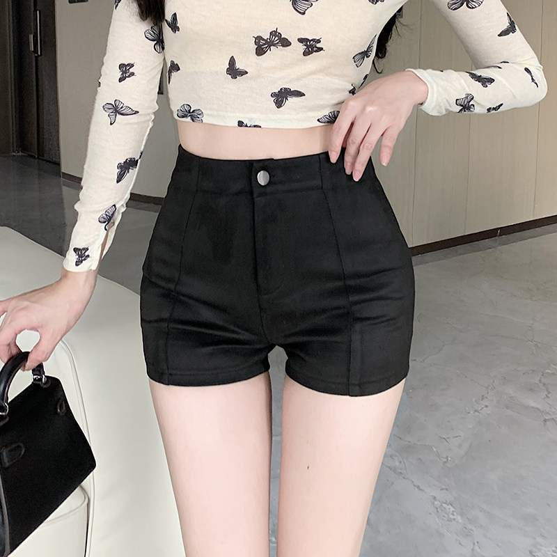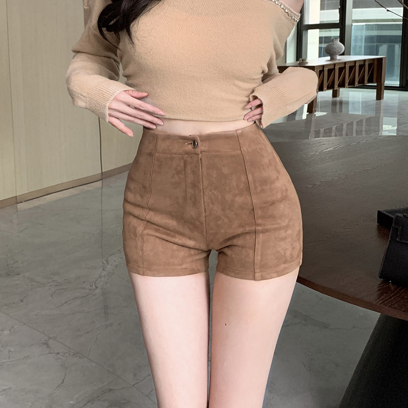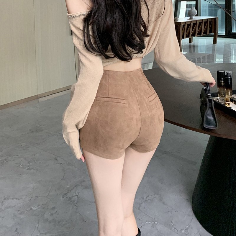 鹿皮绒短裤女2025秋冬新款外穿靴裤高腰韩版紧身黑色包臀打底裤子