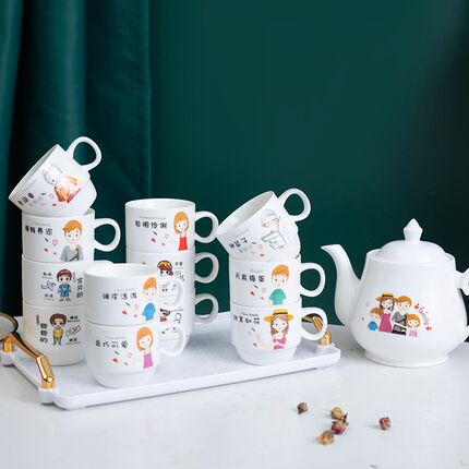 家庭装陶瓷杯具套装家用骨瓷客厅杯子茶杯水具茶具创意冷水壶耐热