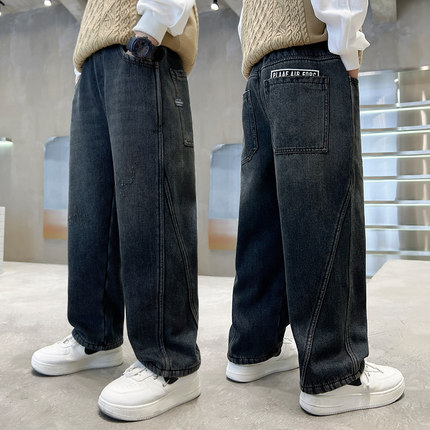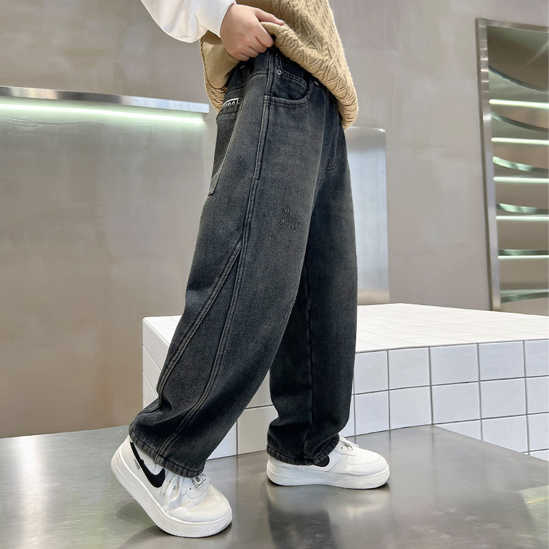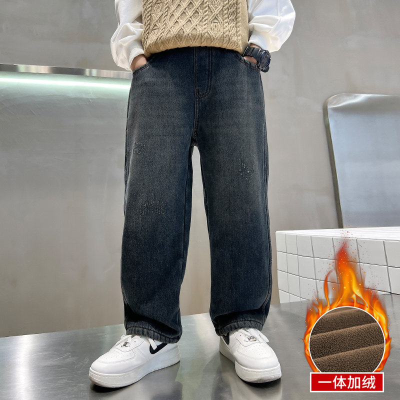 男童加绒裤子秋冬款2025新款洋气男孩牛仔裤中大童长裤秋装休闲裤